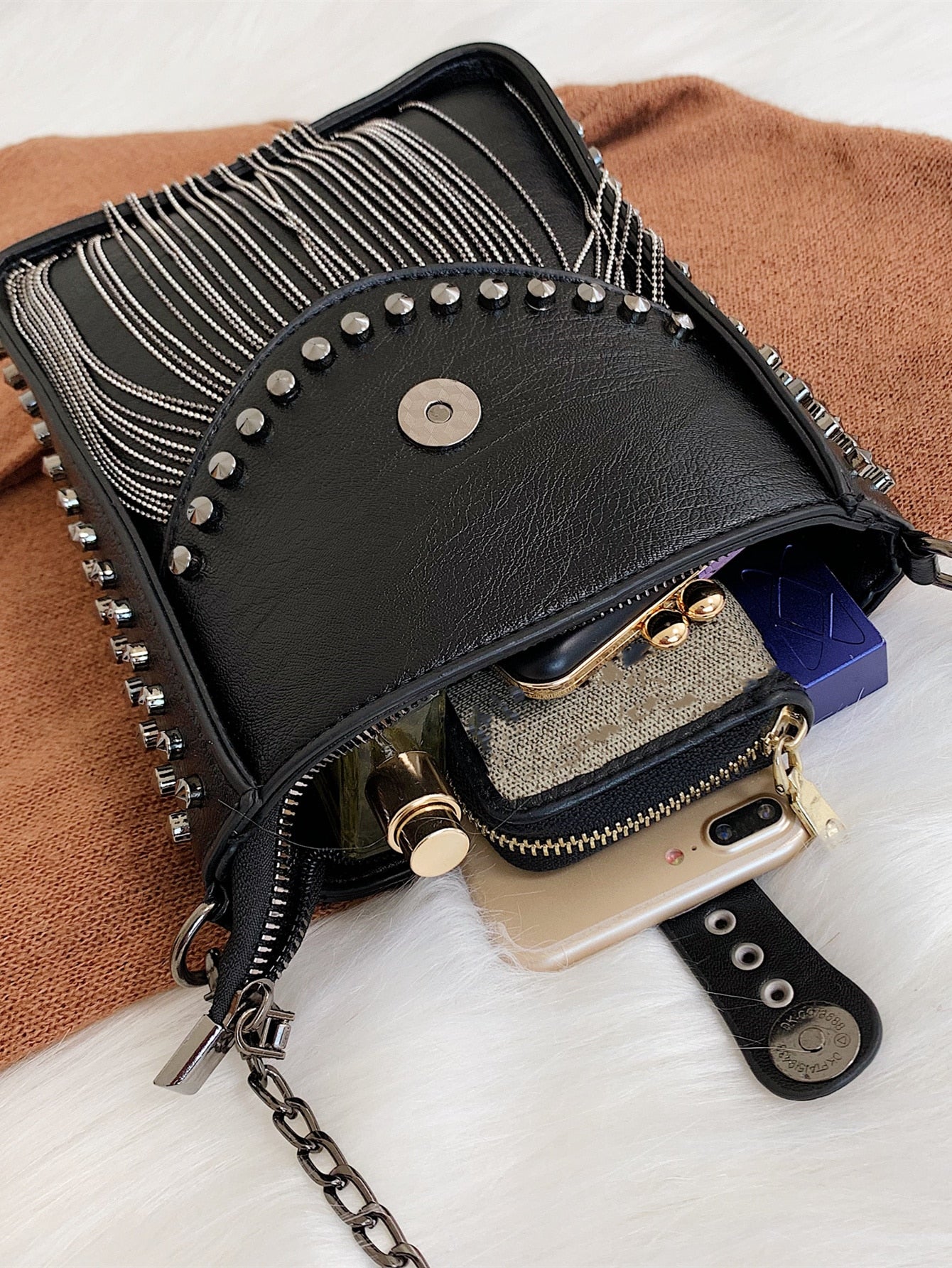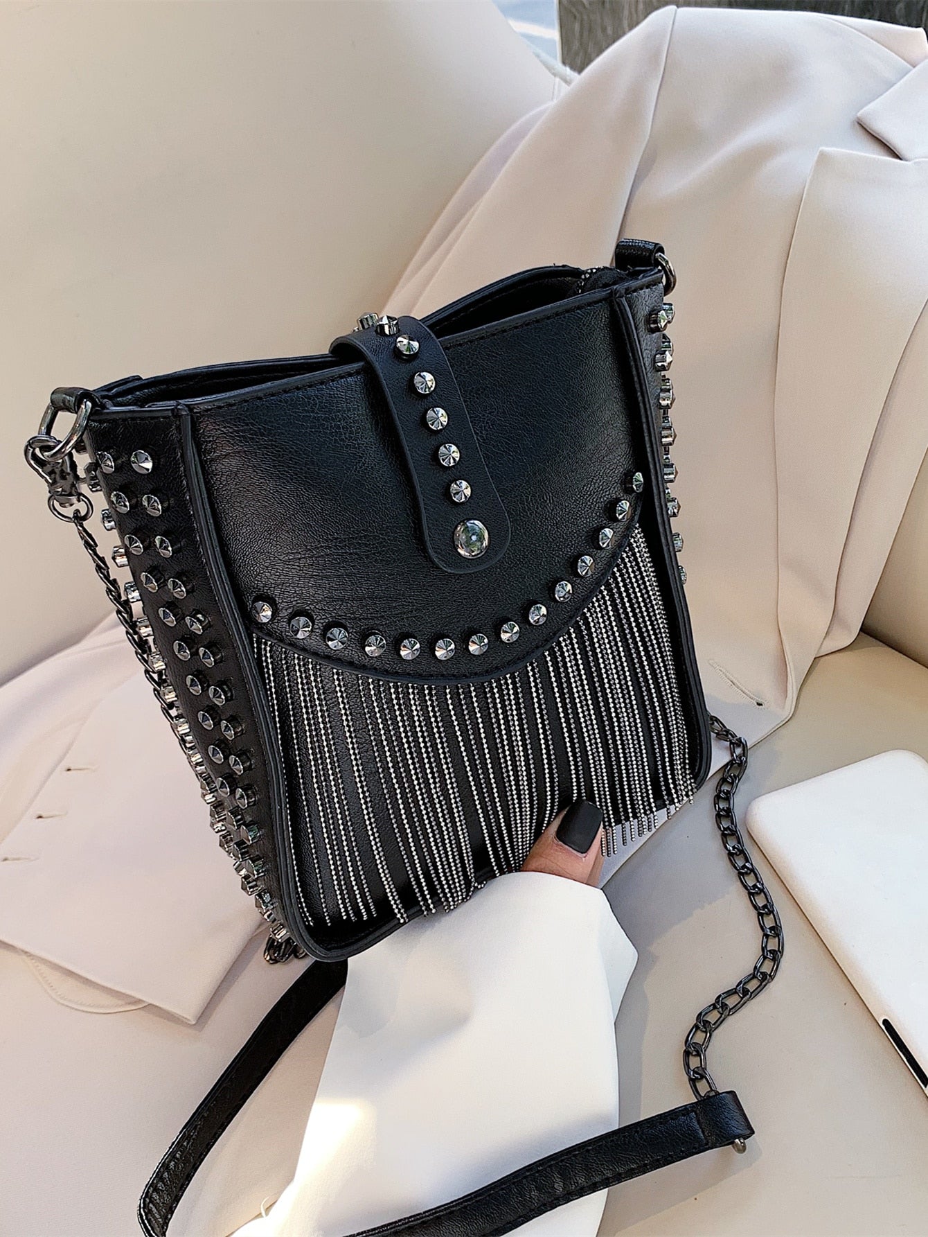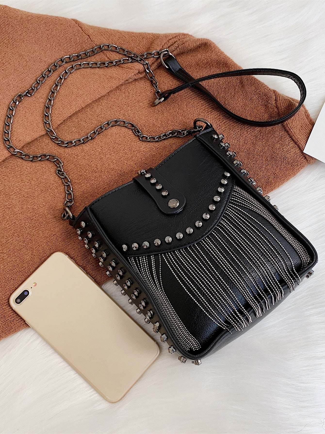 Chic Mini Fringe Studded Bucket Bag: Perfect for Effortless Style