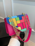 Chic Mini Plaid Backpack with Contrast Stitching & Metal Chain Strap – Perfect for Everyday Style!
