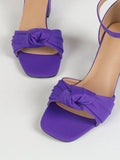 Chic Minimalist Knot Detail Peep-Toe Ankle Strap Sandals with Chunky Heel
