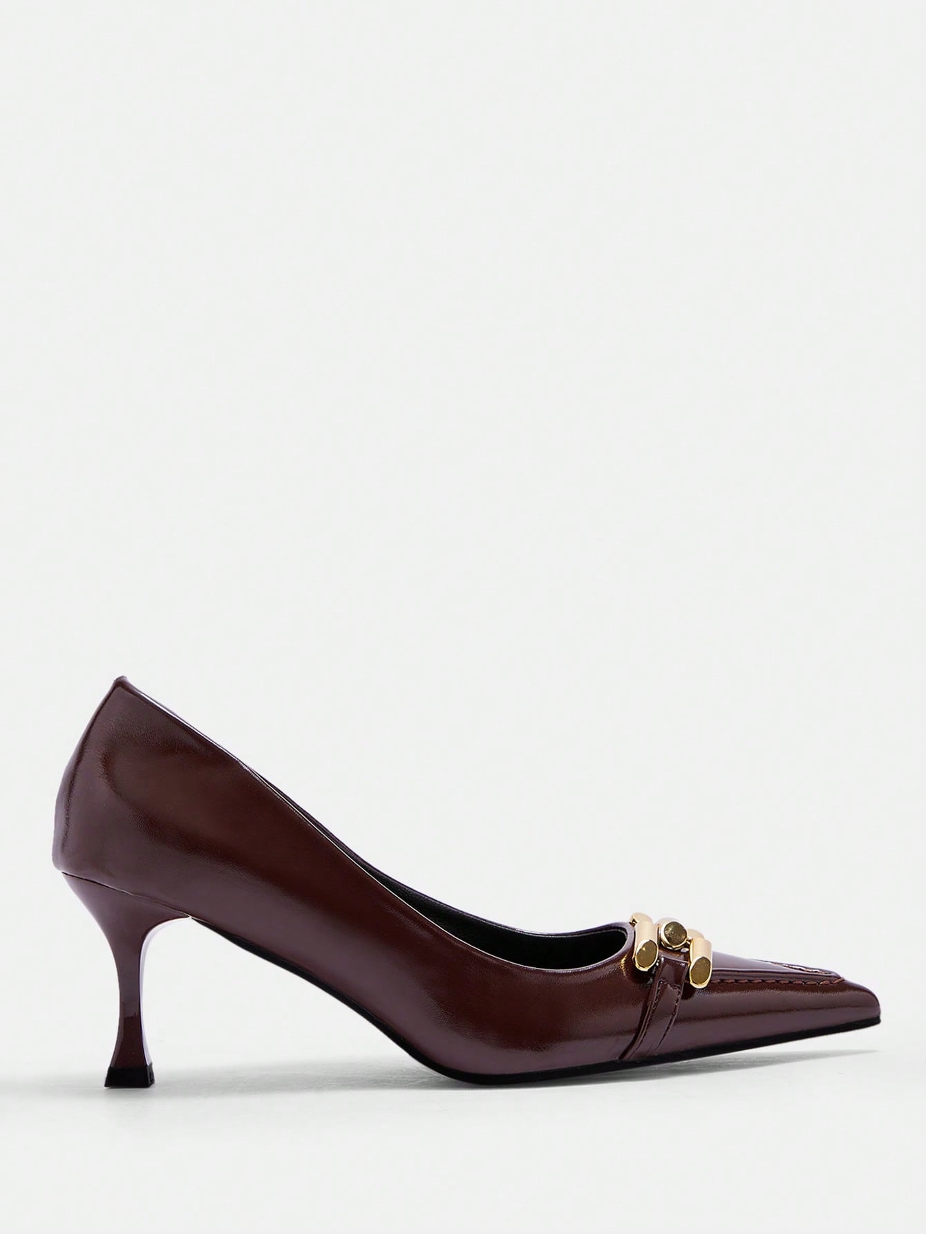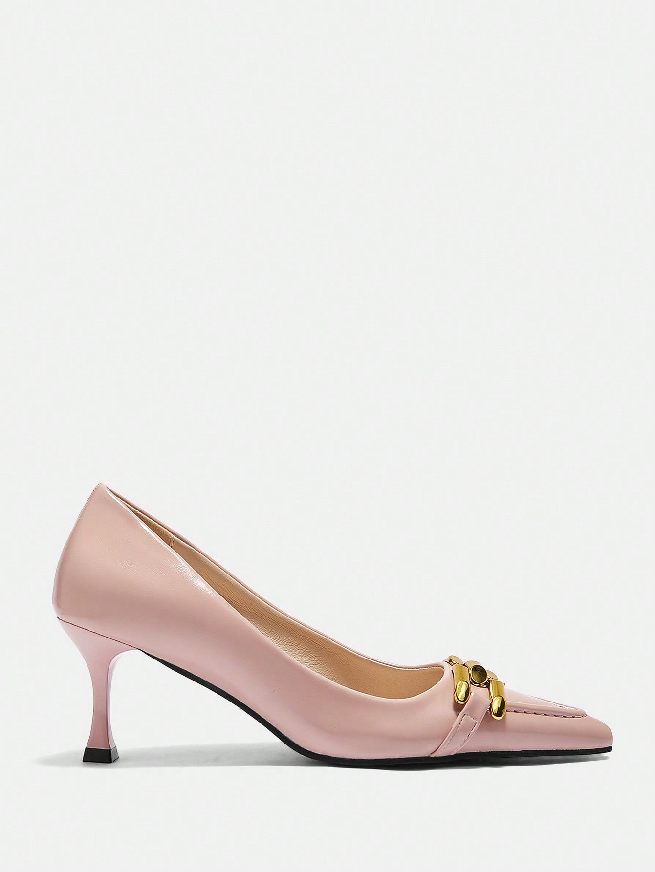 Chic Minimalist Metallic-Accent Pointed Toe High Heel Pumps for Effortless Elegance