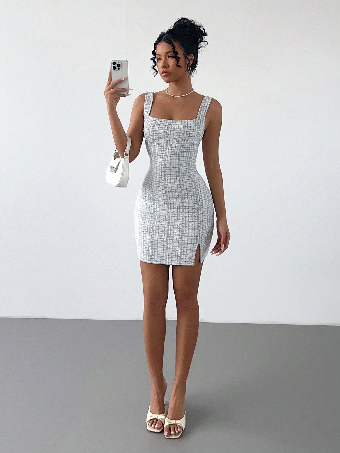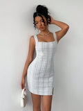 Chic Minimalist Street Style Mini Dress with Geometric Print