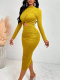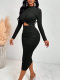 Chic Mock Neck Cut-Out Ruched Bodycon Dress - Elevate Your Style!
