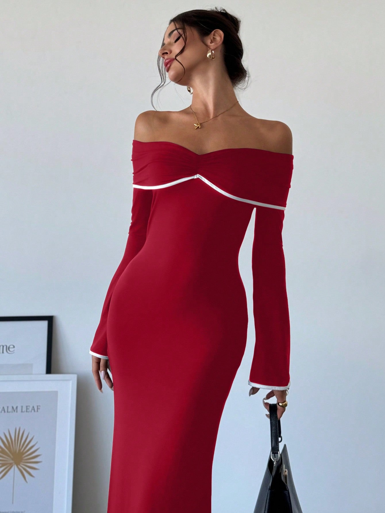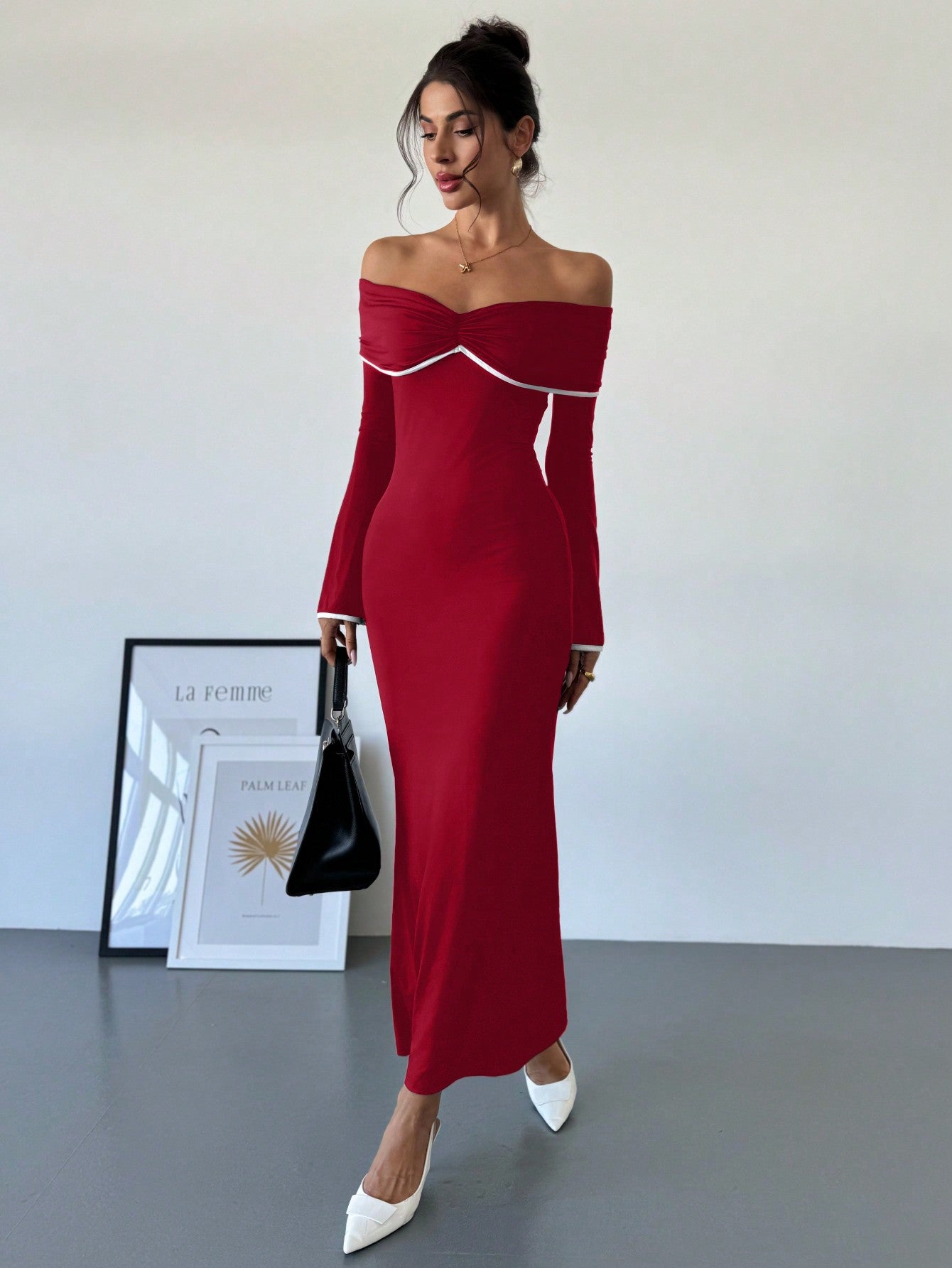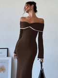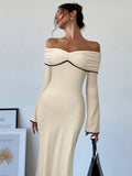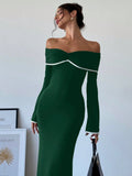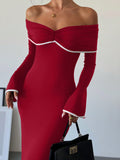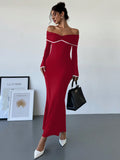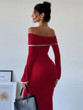 Chic Off-Shoulder Color Block Mermaid Dress – Elegance Meets Bold Style