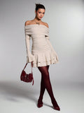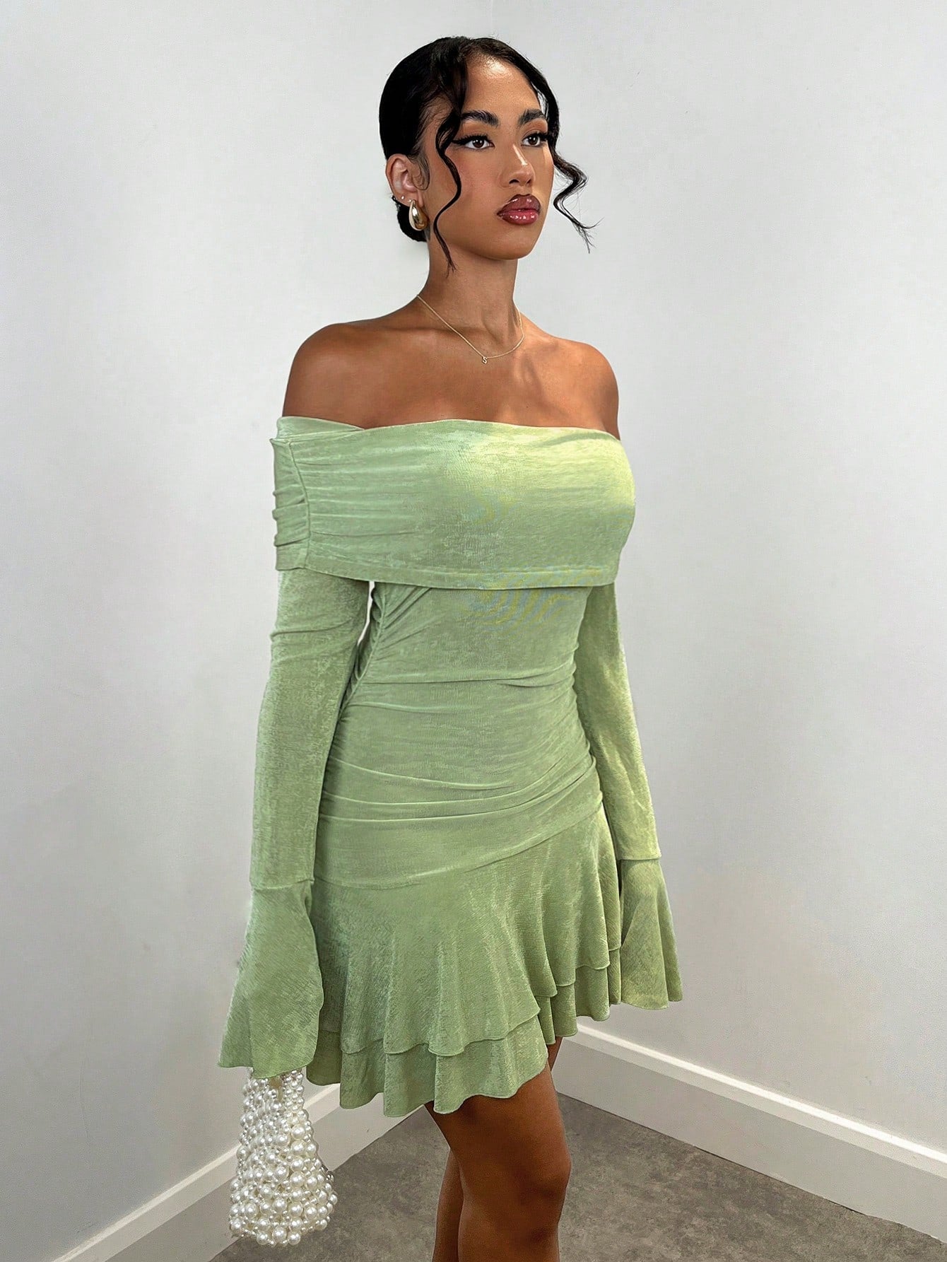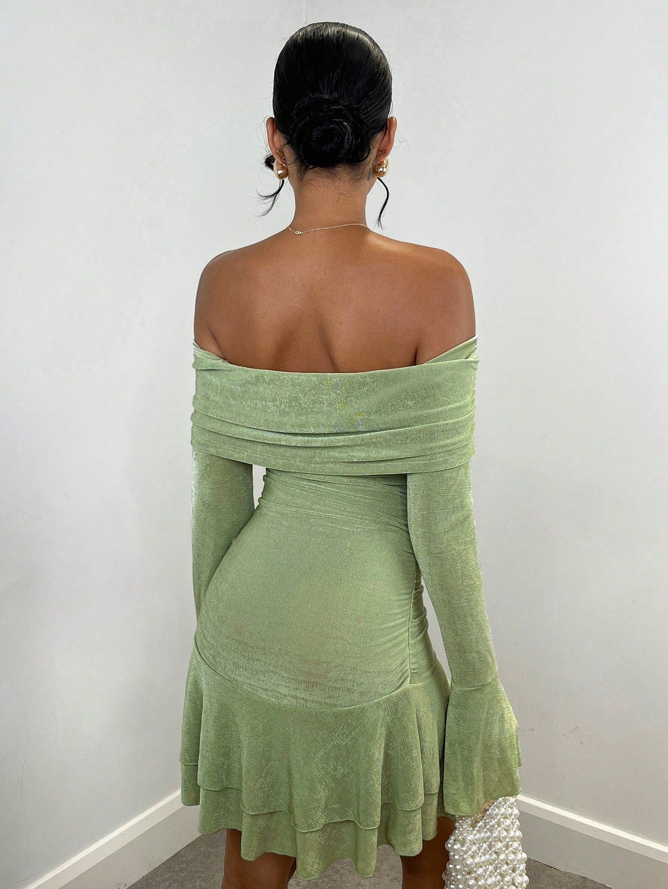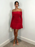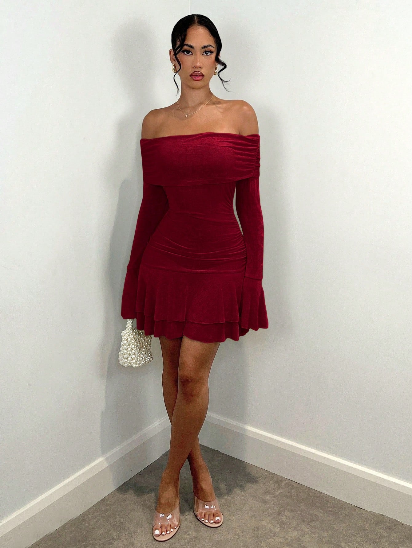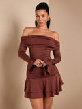 Chic Off-Shoulder Flare Sleeve Ruffle Hem Dress for Effortless Brunch Style