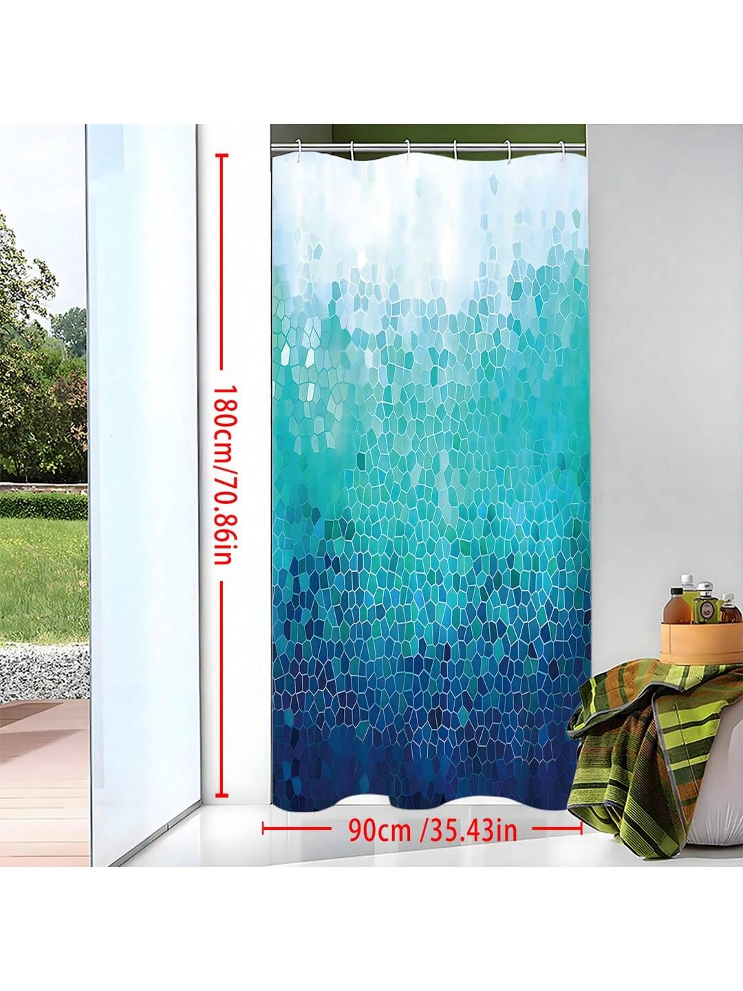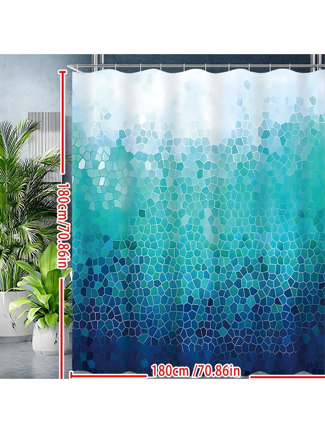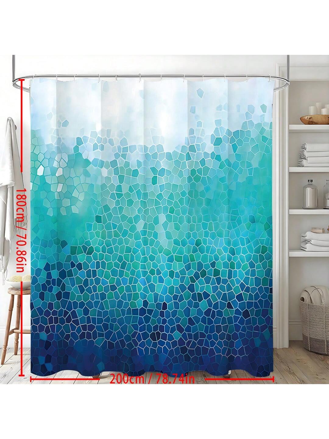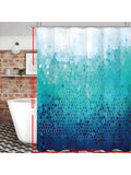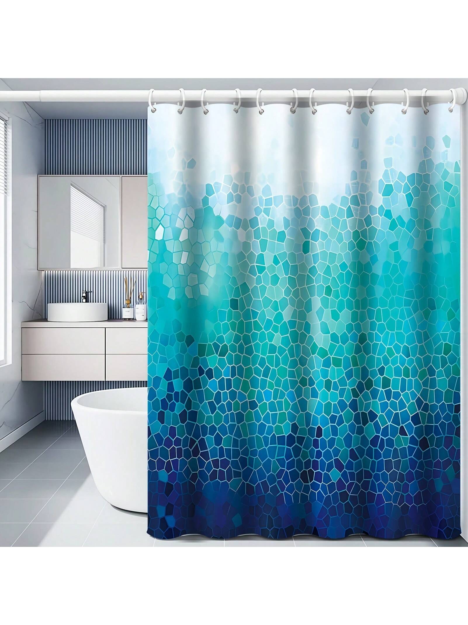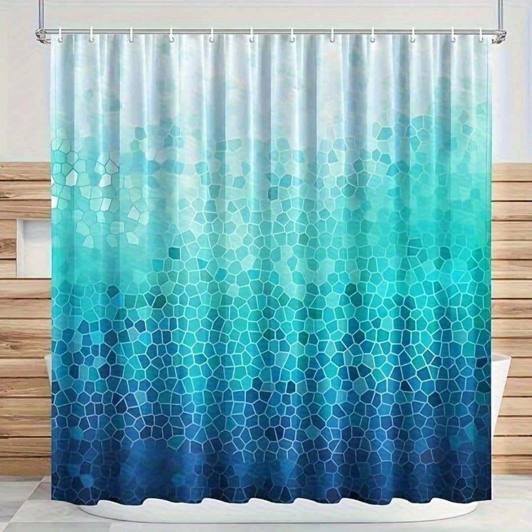 Chic Ombre Blue Geometric Shower Curtain - Stylish & Waterproof Bathroom Décor with 12 Hooks