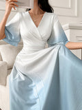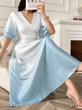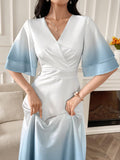 Chic Ombre Ruffle Trim V-Neck Summer Dress for Effortless Style