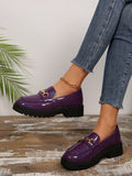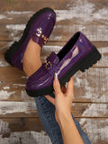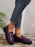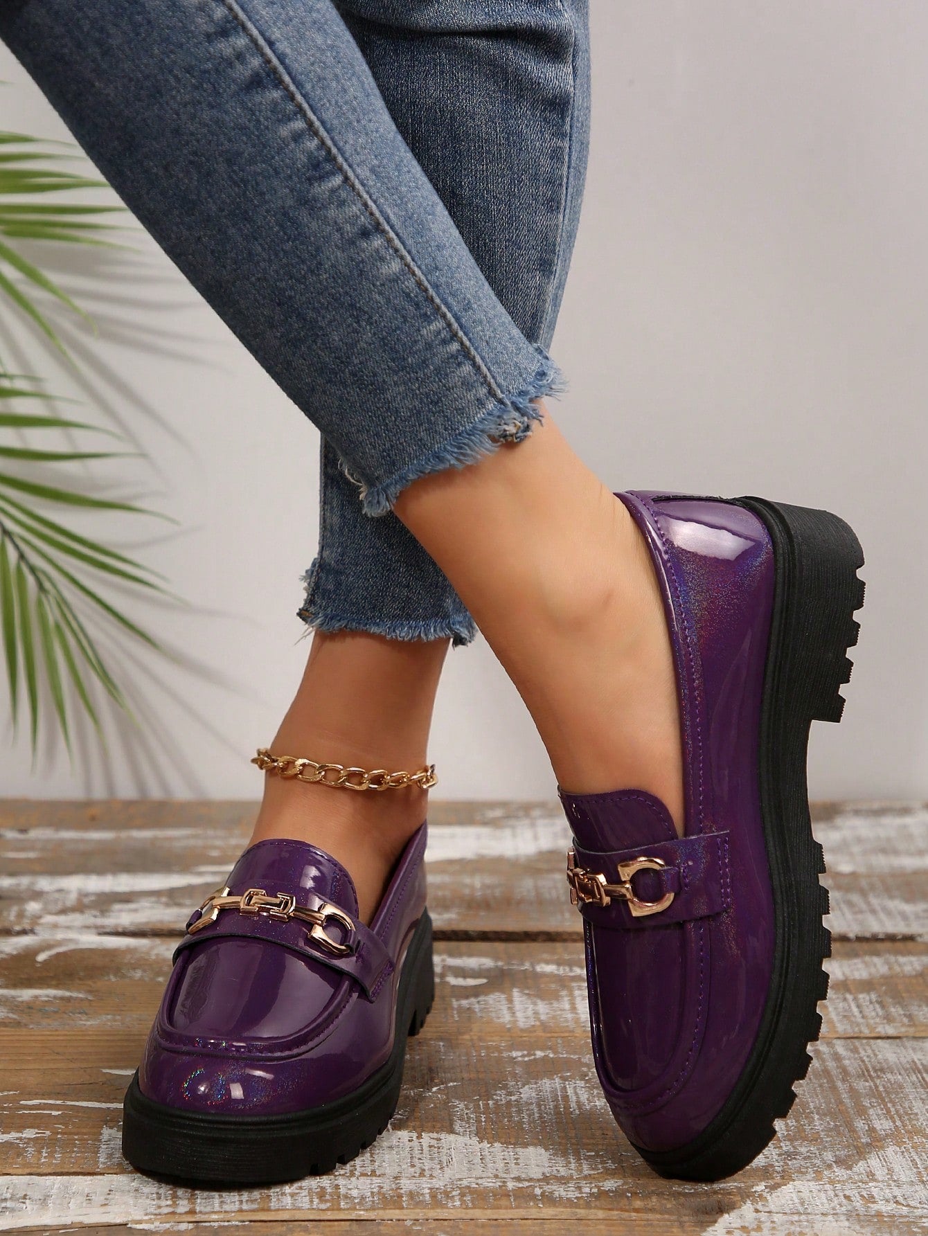 Chic Patent Loafers with Thick Sole and Metal Chain Accent - Perfect Year-Round Flats
