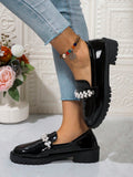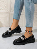 Step into style with our Chic Pearl-Embellished Chunky Platform Loafers! These trendy British shoes are perfect for Fall/Winter 2024. With a chunky platform and pearl accents, you'll be the talk of the town. Elevate any outfit with ease and stand out from the crowd. (Put your best foot forward with these cheeky loafers!)