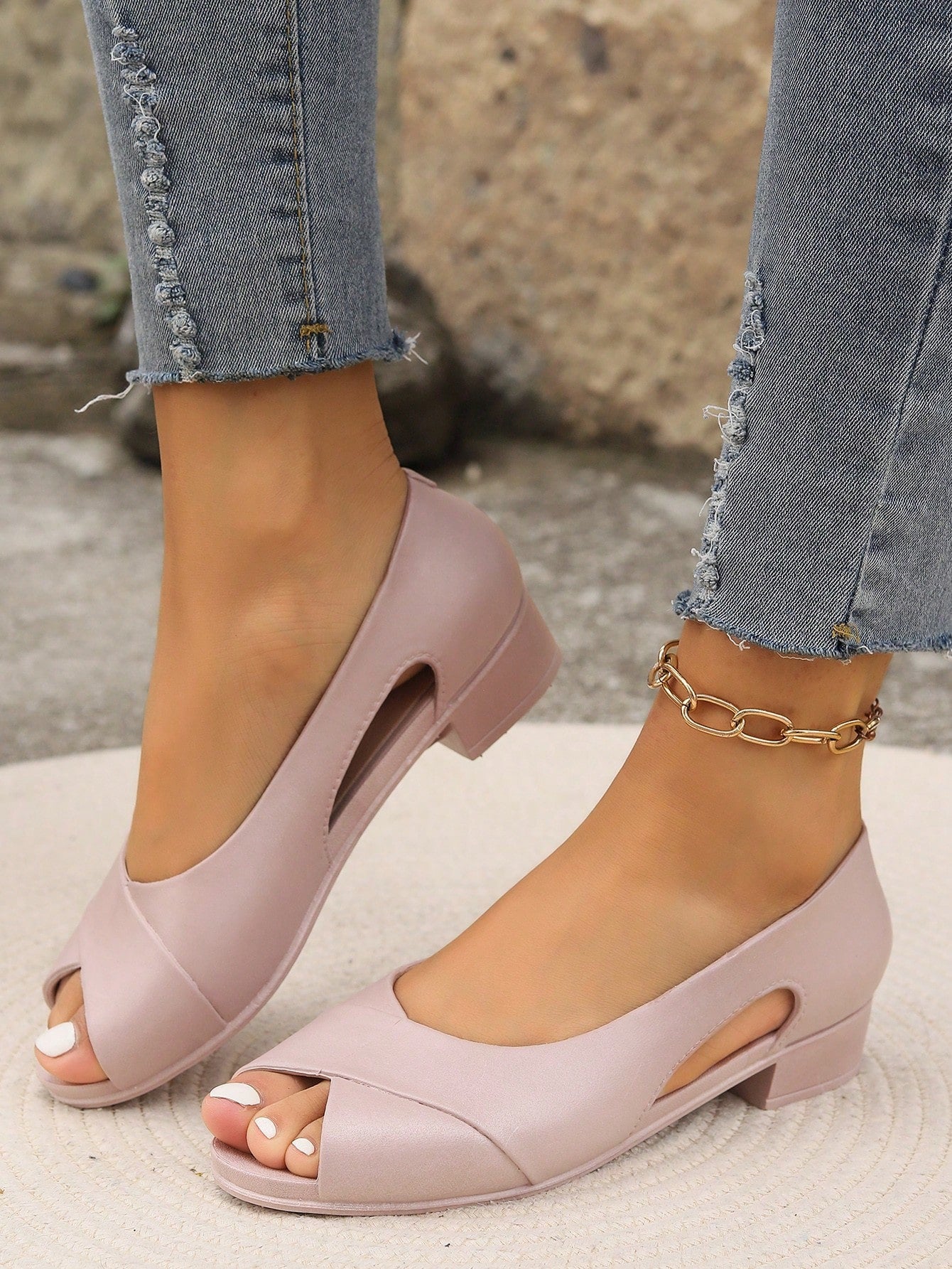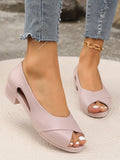 Chic Peep-Toe Slip-On Sandals with Thick Heel for Effortless Style
