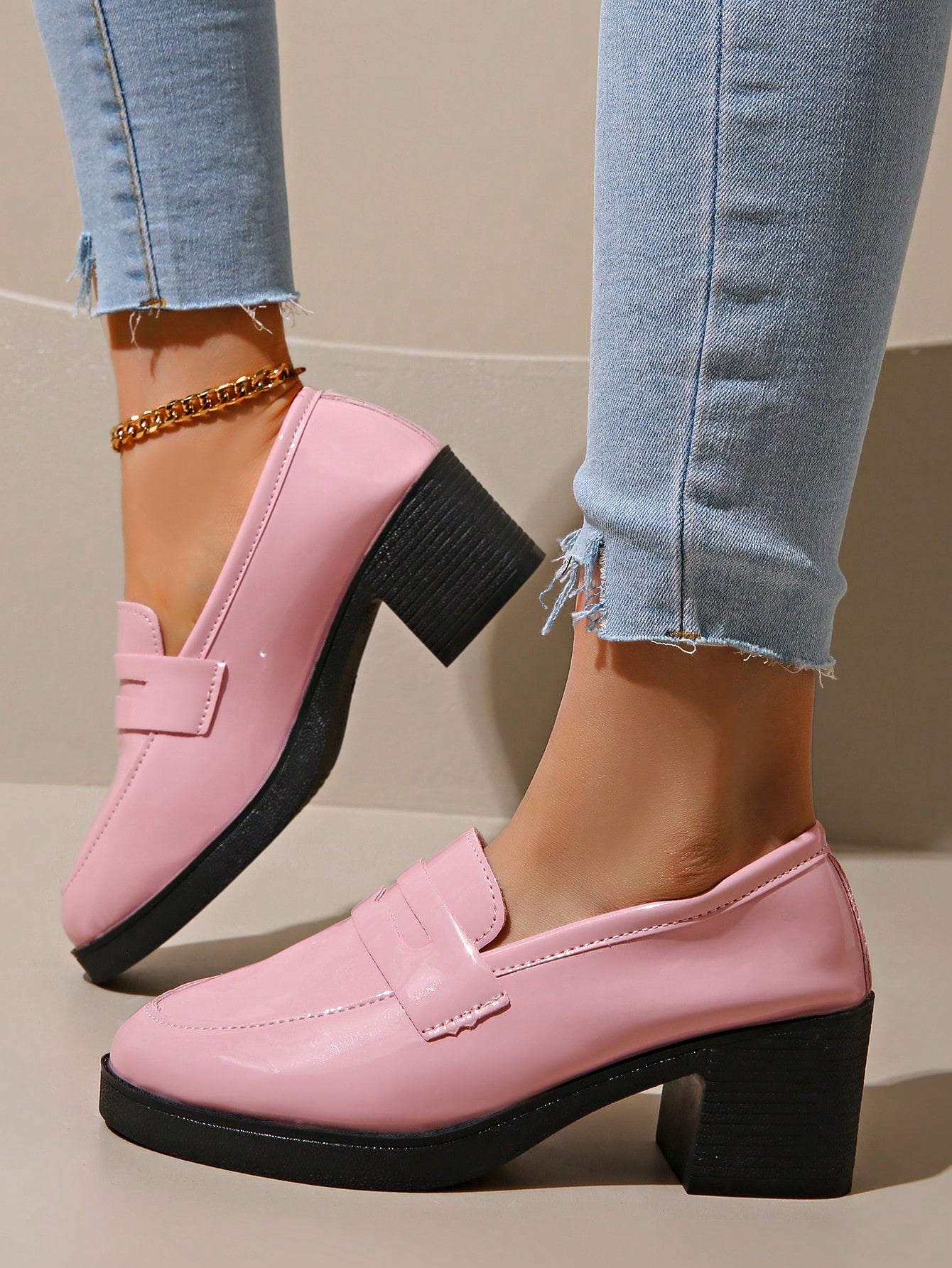 Experience style and comfort with our Chic Pink Leather Glitter Fringe Loafers. These elegant loafers feature a chunky platform heel, perfect for adding height and sophistication to any outfit. Made with high-quality leather and adorned with subtle glitter details, these loafers are both trendy and durable. Elevate your fashion game with these stylish shoes.