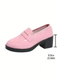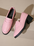 Chic Pink Leather Glitter Fringe Loafers with Chunky Platform Heels