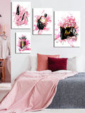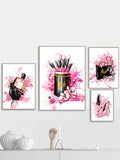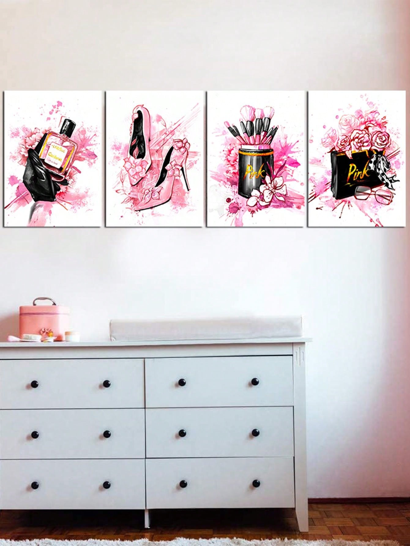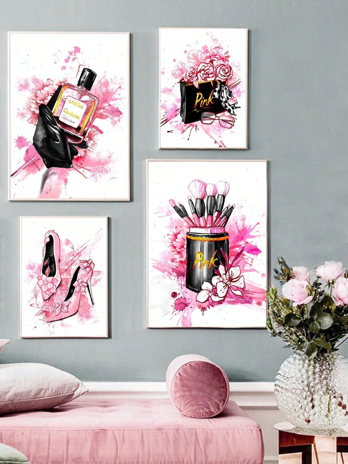 Chic Pink Perfume and Fashion Canvas Set: The Modern Girl's Room Decor Collection