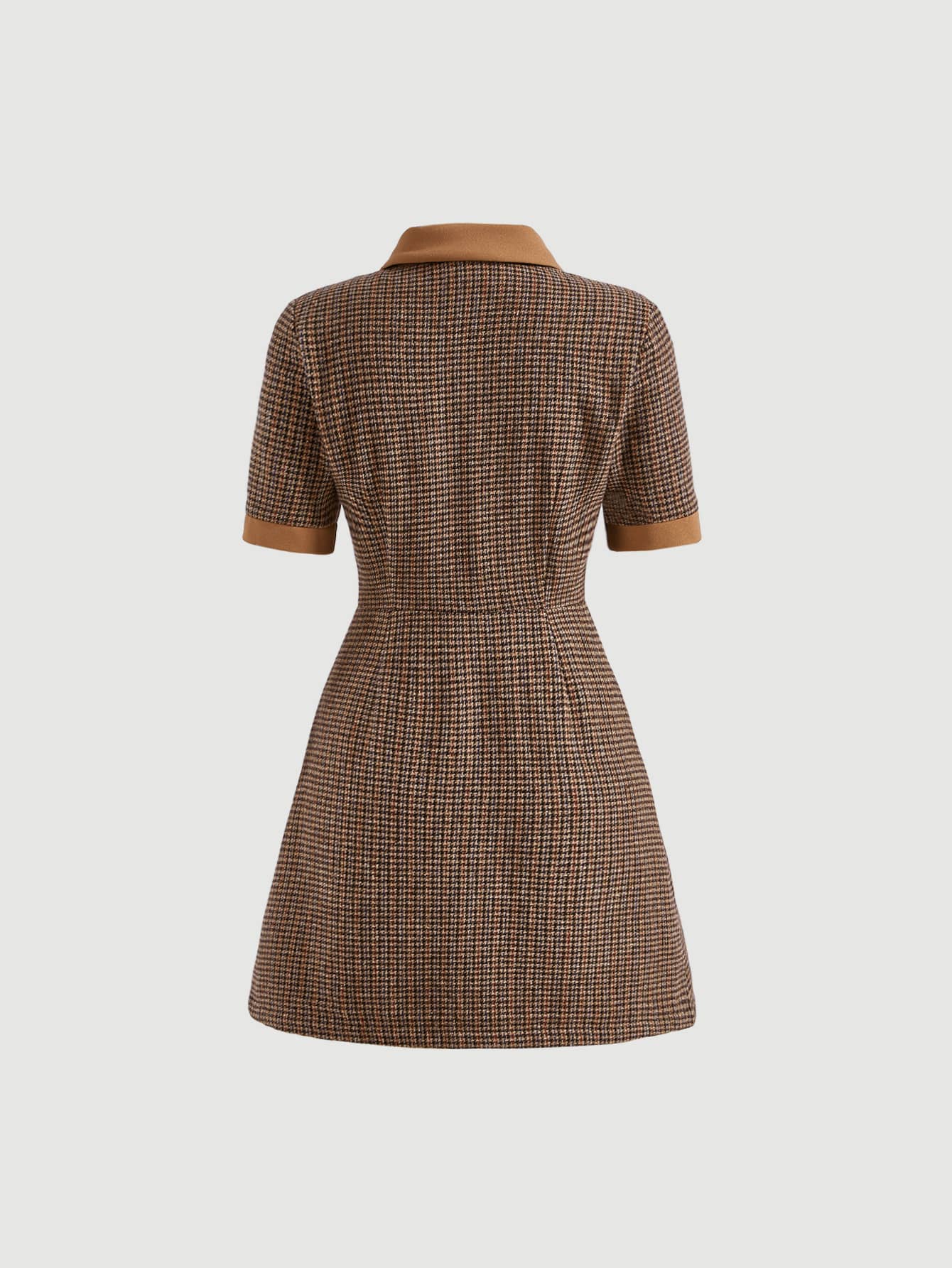 Chic Plaid Print Button-Front Dress with Lapel Collar