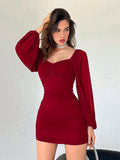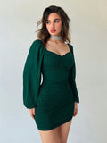 Chic Pleated Bodycon Dress with Lantern Sleeves for Effortless Elegance