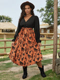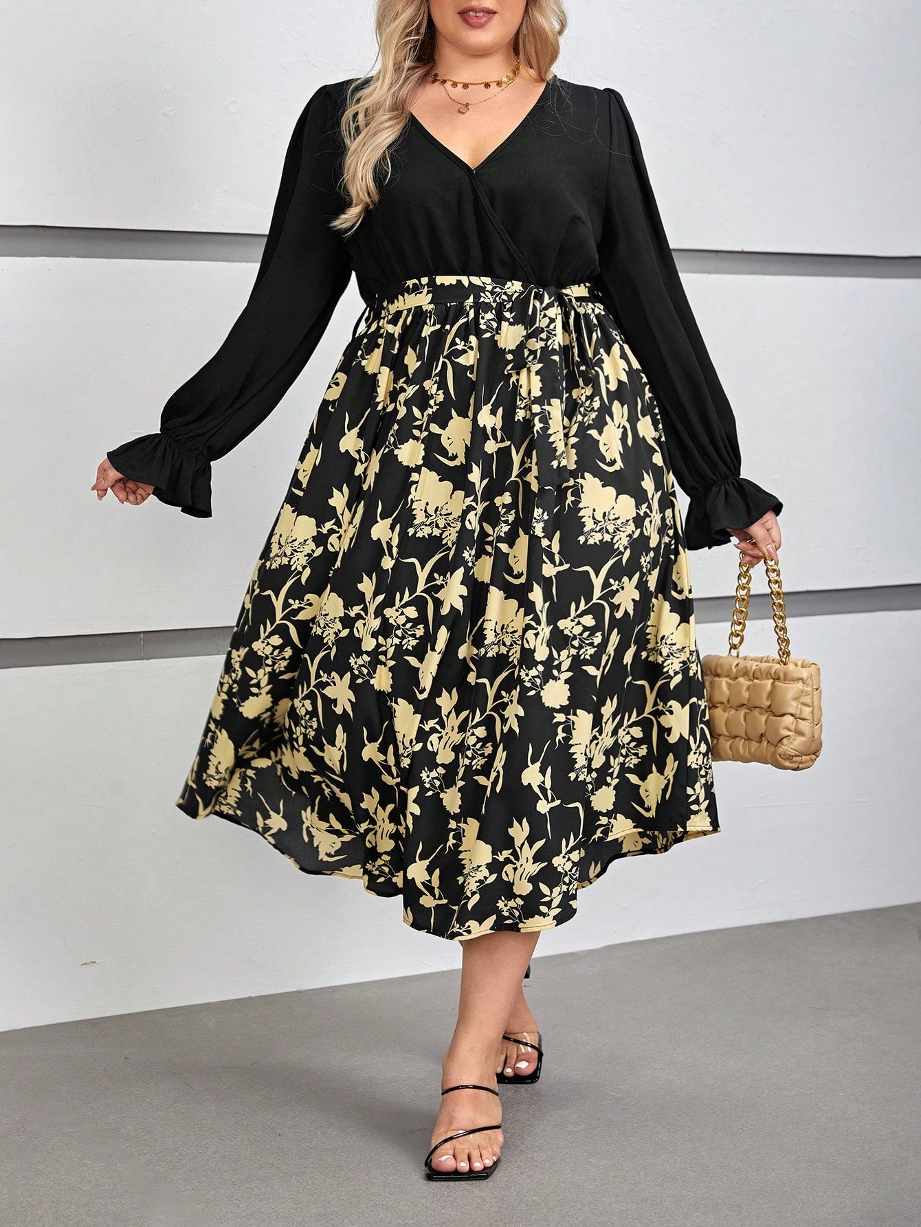 Chic Plus Floral Print Flare Sleeve Belted Dress for Effortless Elegance