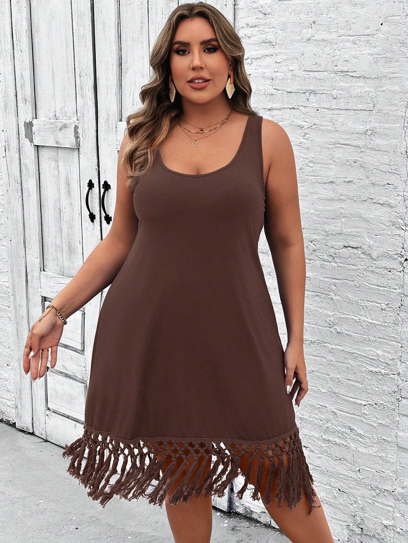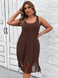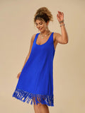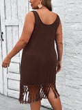 Chic Plus Size Blue Tassel Knitted Dress for Effortless Summer Vibes