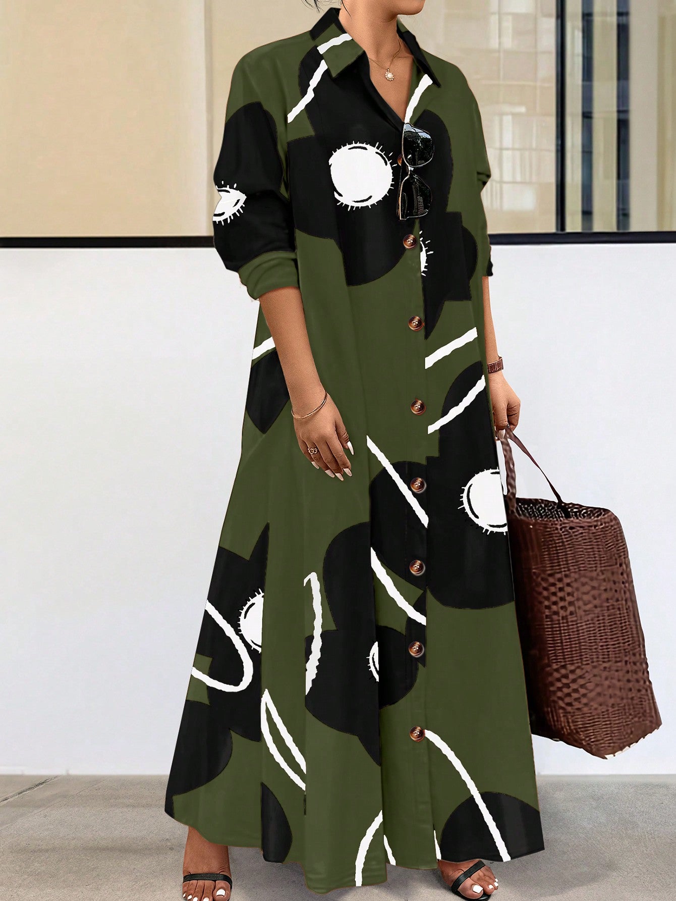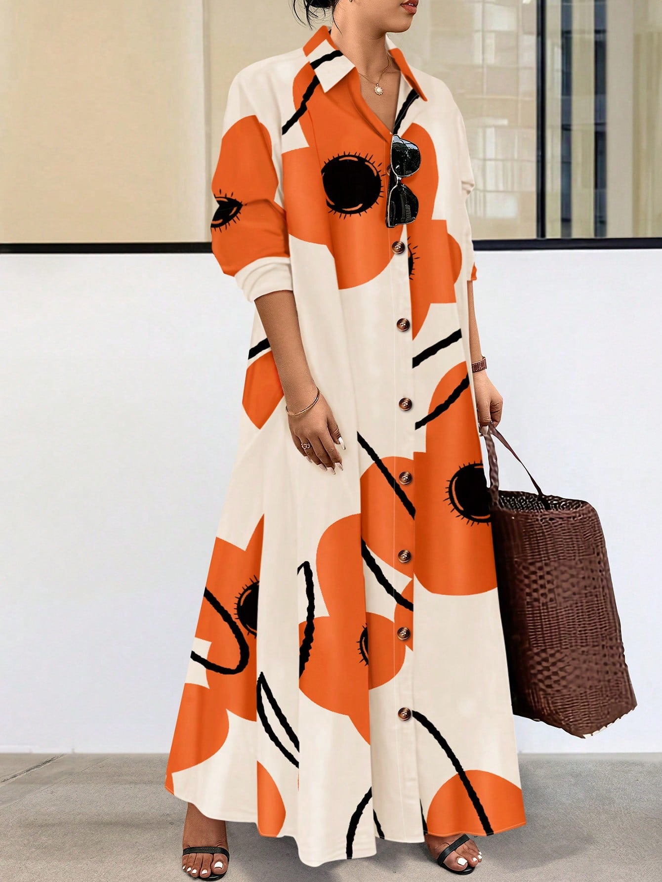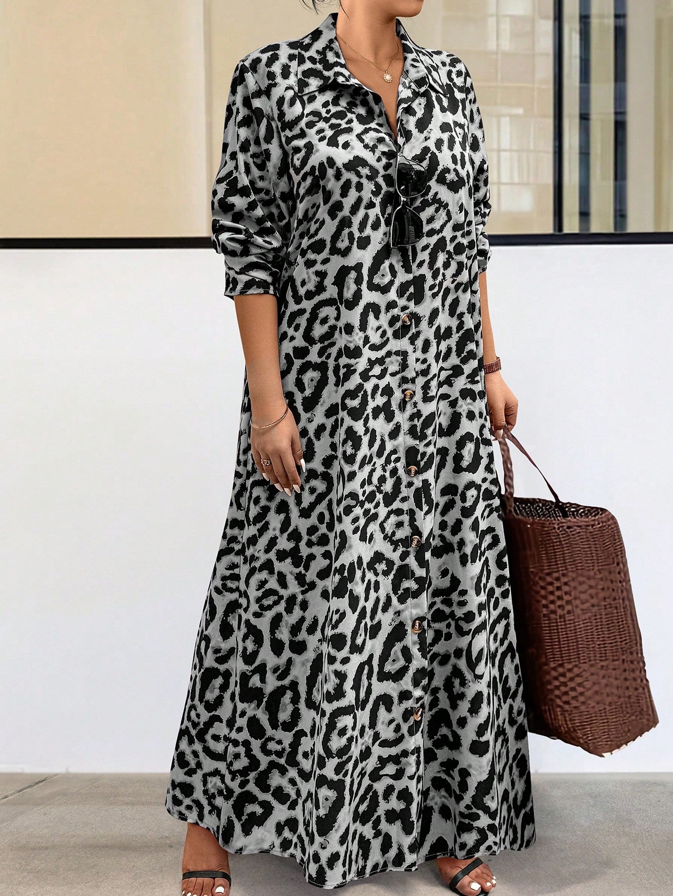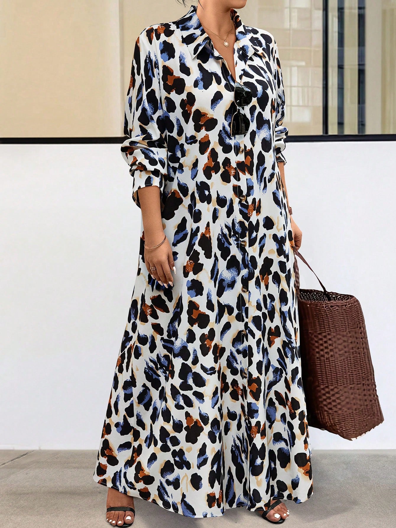 Chic Plus Size Floral & Leopard Print Long Sleeve Casual Dress
