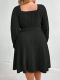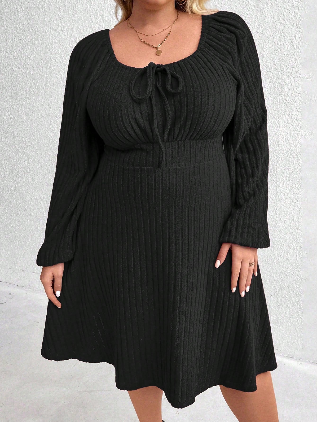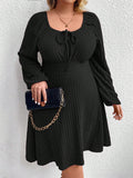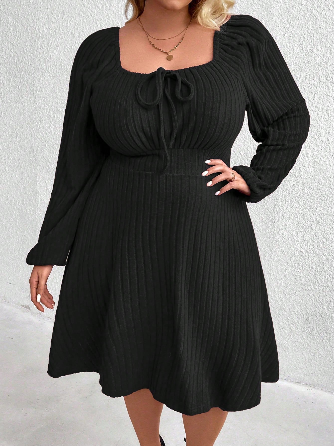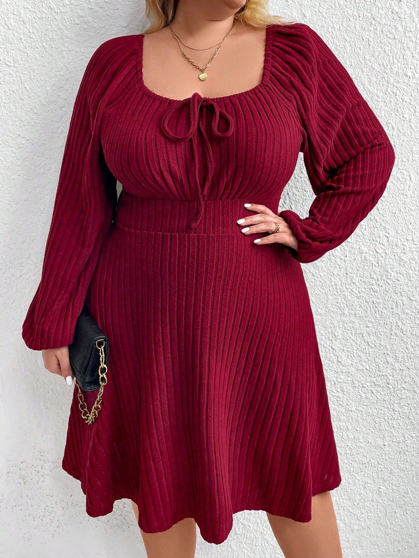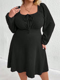 Chic Plus Size Ribbed Knotted Front Lantern Sleeve Dress - Effortless Style for Every Occasion