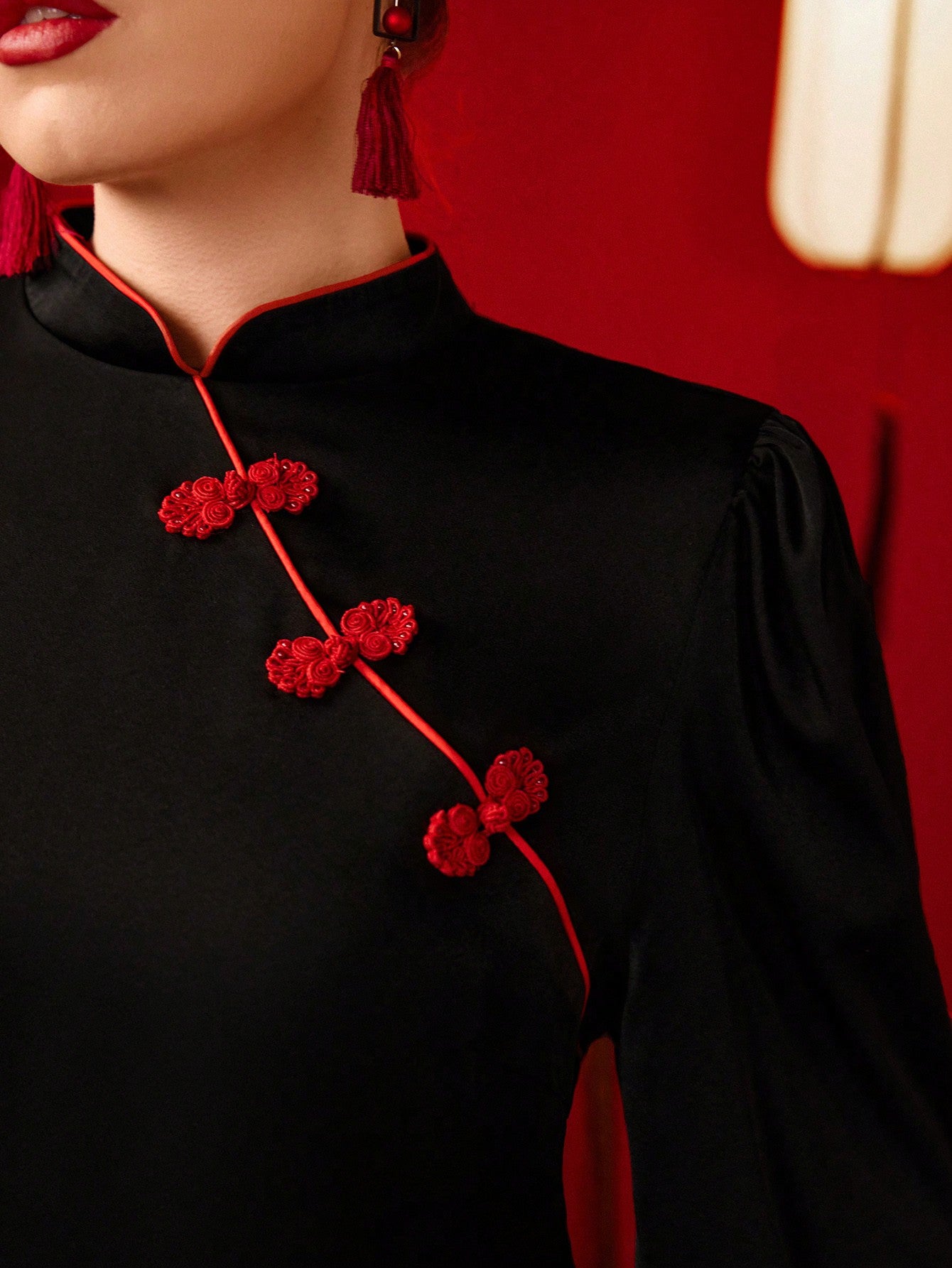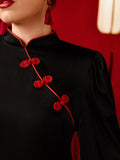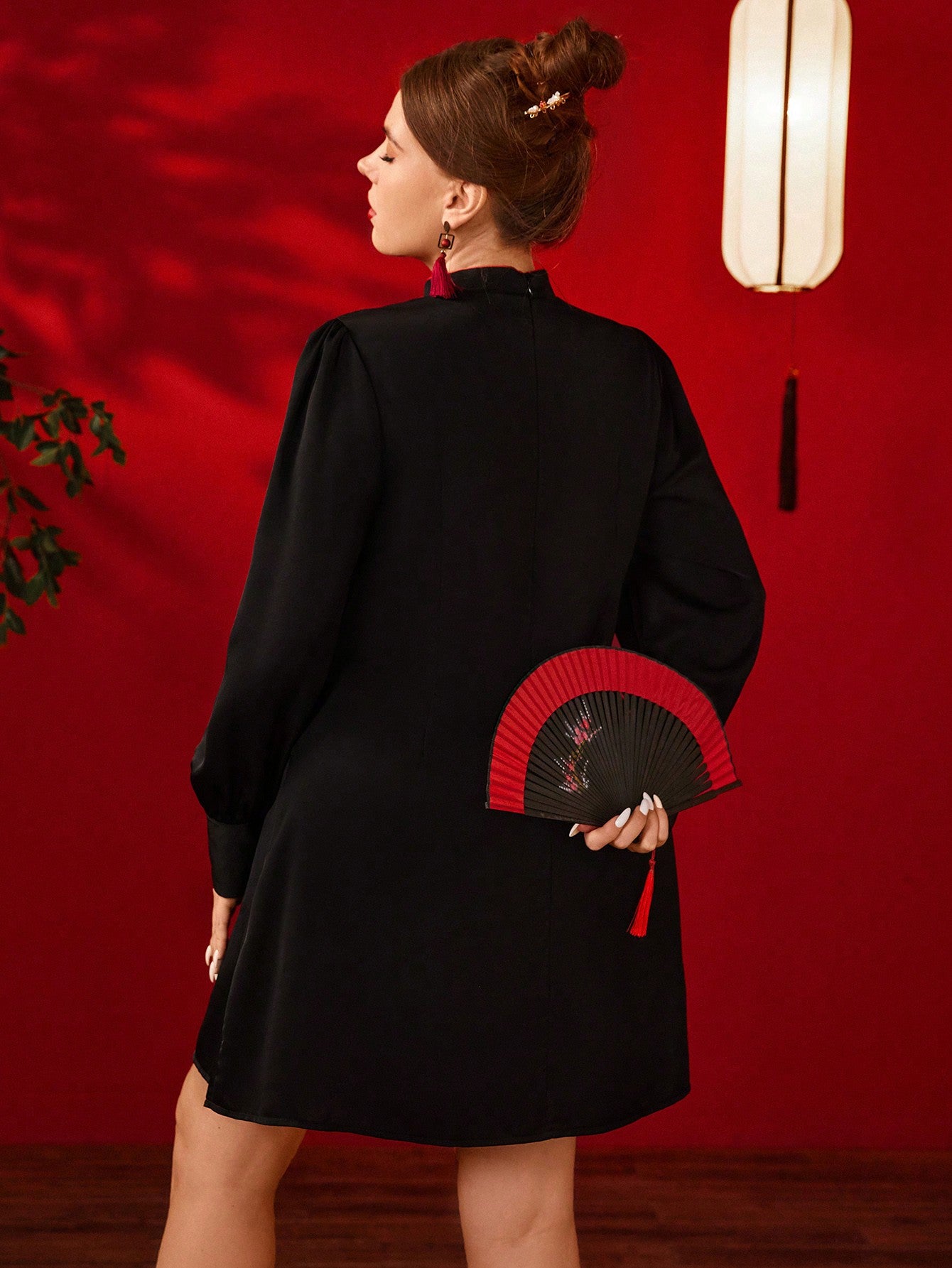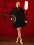 Chic Plus Size Solid Color Splice Stand Collar Long Sleeve Elegant Dress