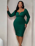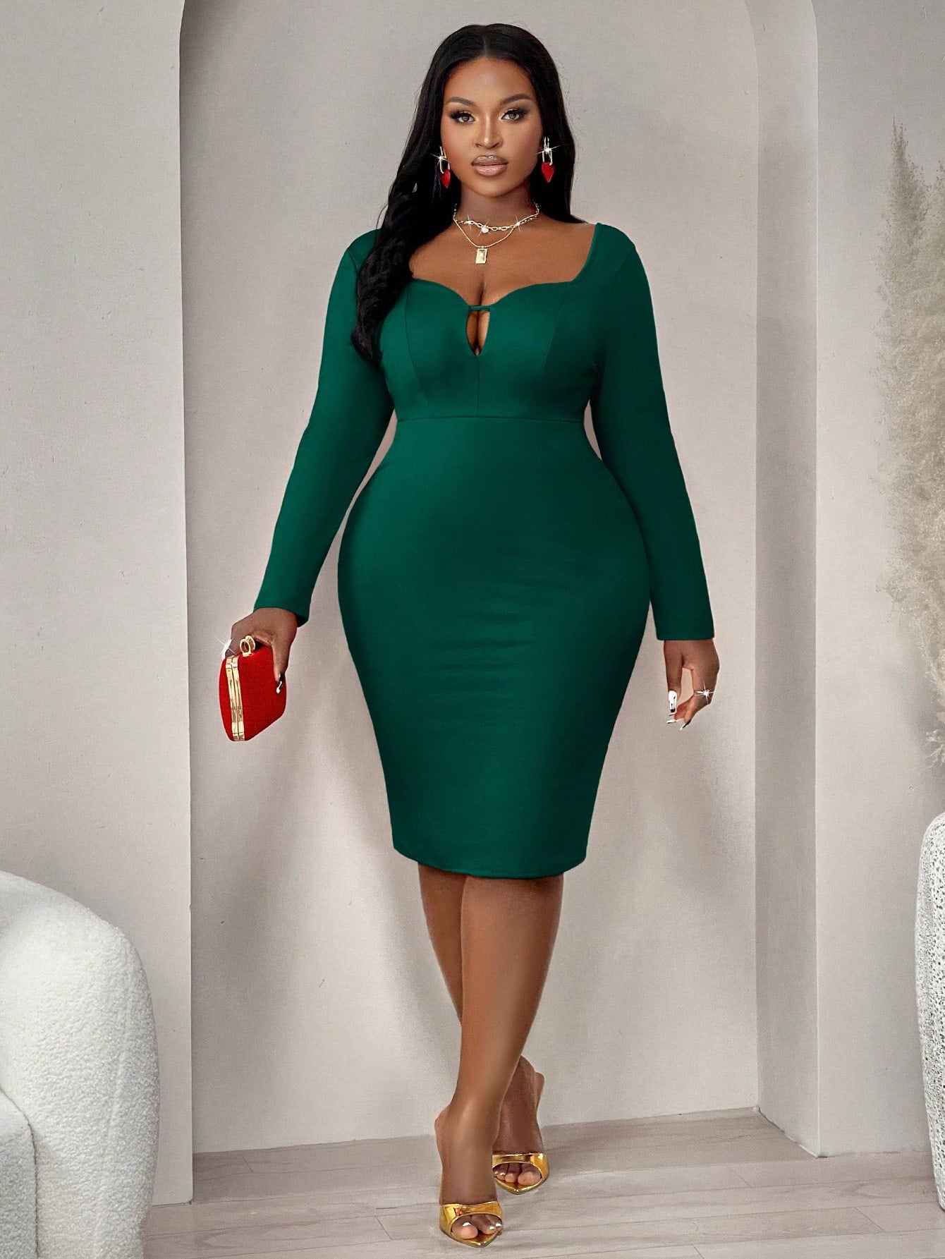 Introducing our Chic Plus-Size Sweetheart Collar Bodycon Dress with Bowknot Back. This dress is perfect for parties and date nights, making you stand out in the crowd. With its sleek design and sophisticated bowknot back, you'll be the talk of the town. Get ready to make a statement!