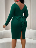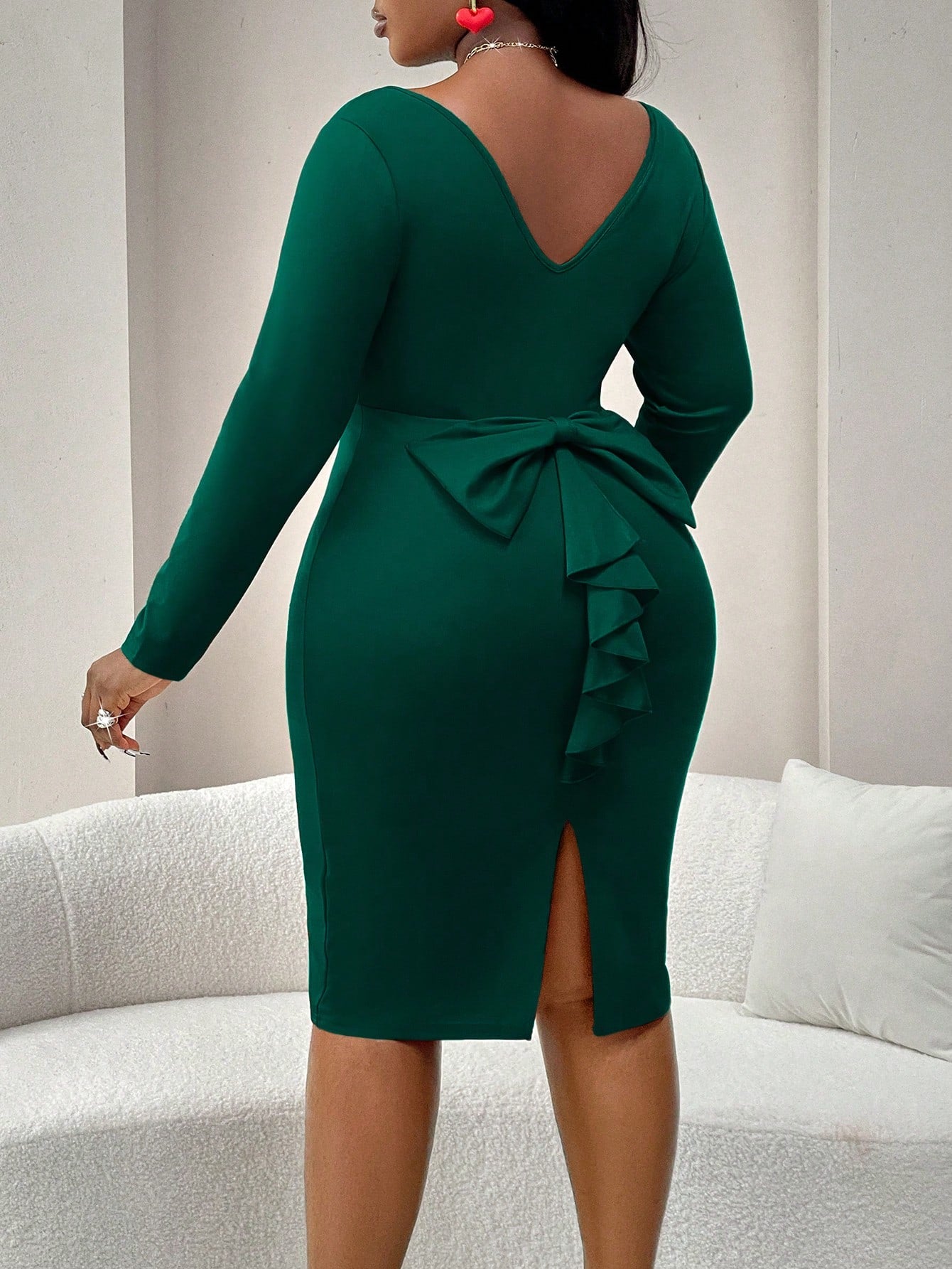 Chic Plus-Size Sweetheart Collar Bodycon Dress with Bowknot Back – Perfect for Parties & Date Nights!
