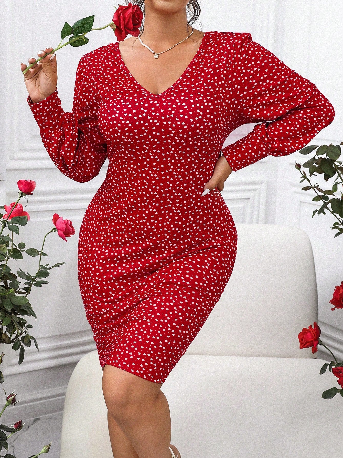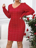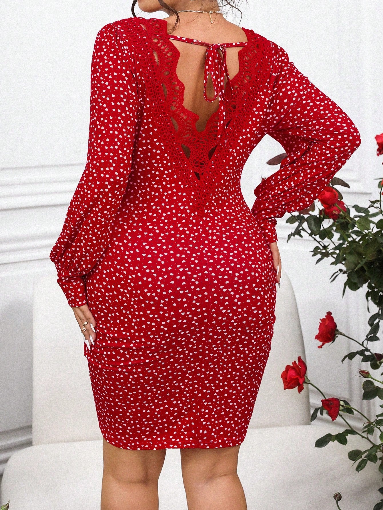 Chic Plus Size Valentine's Day Heart Print Mini Dress with Lace Detailing