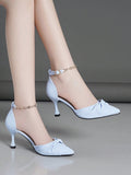Introducing the chic pointed buckle hollow high heels, your must-have shoes for spring and autumn. These stylish heels feature a pointed design and a secure buckle for a modern look. With their hollow construction, these heels will effortlessly elevate any outfit.