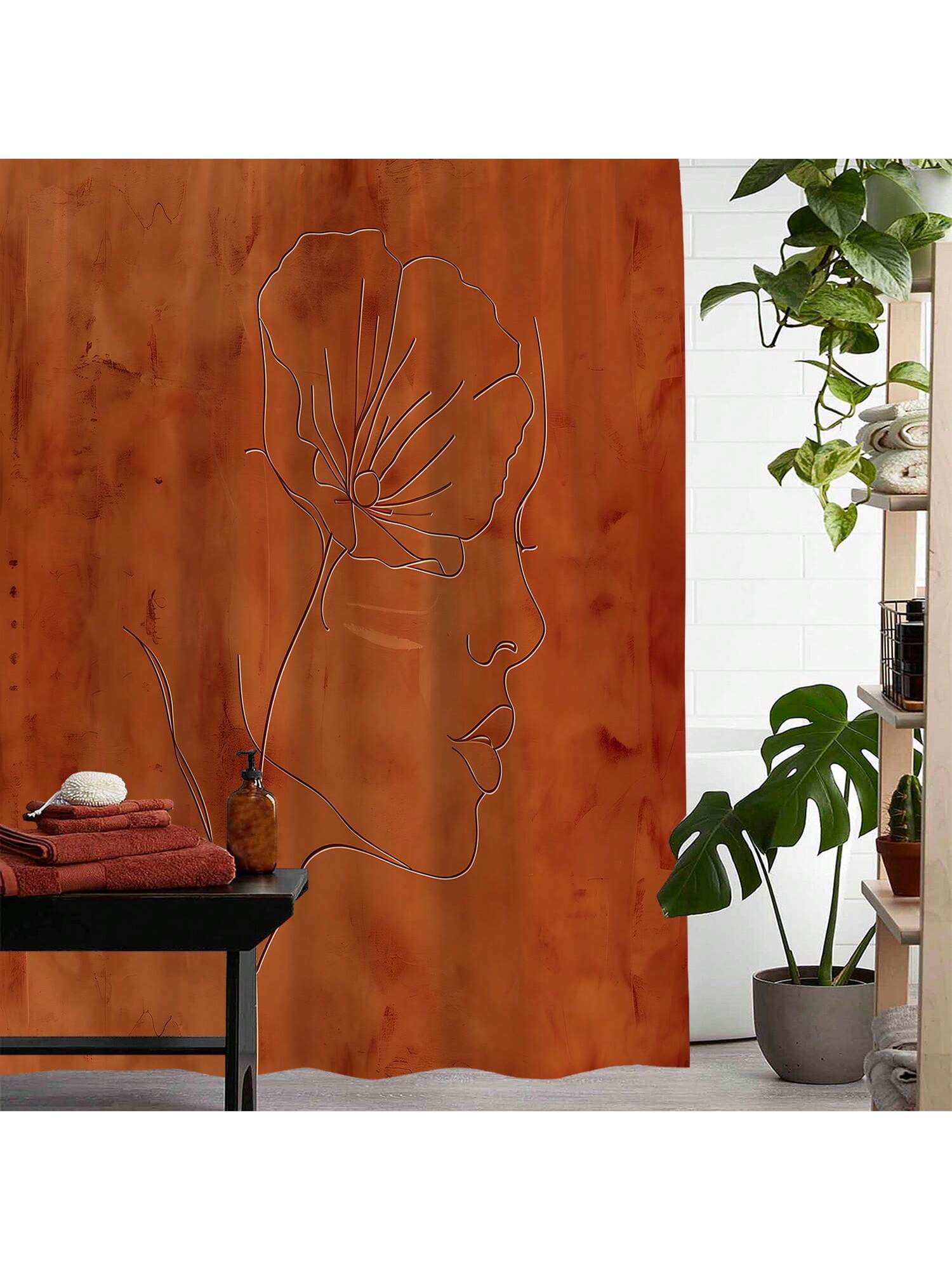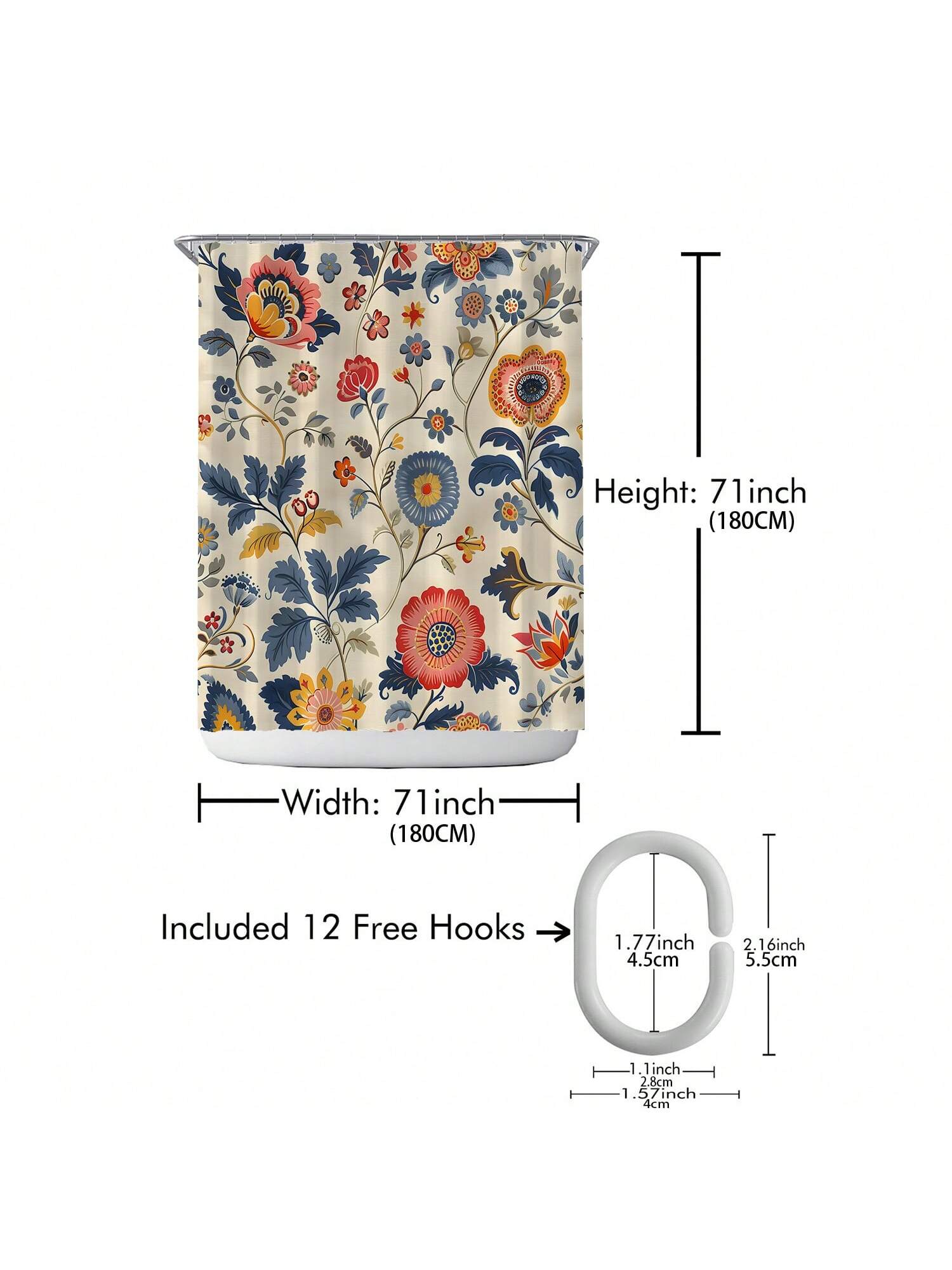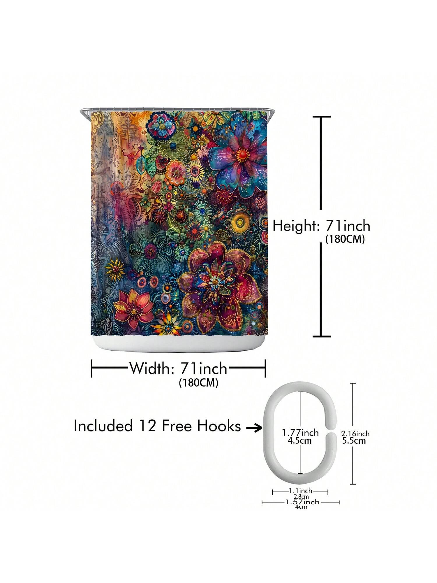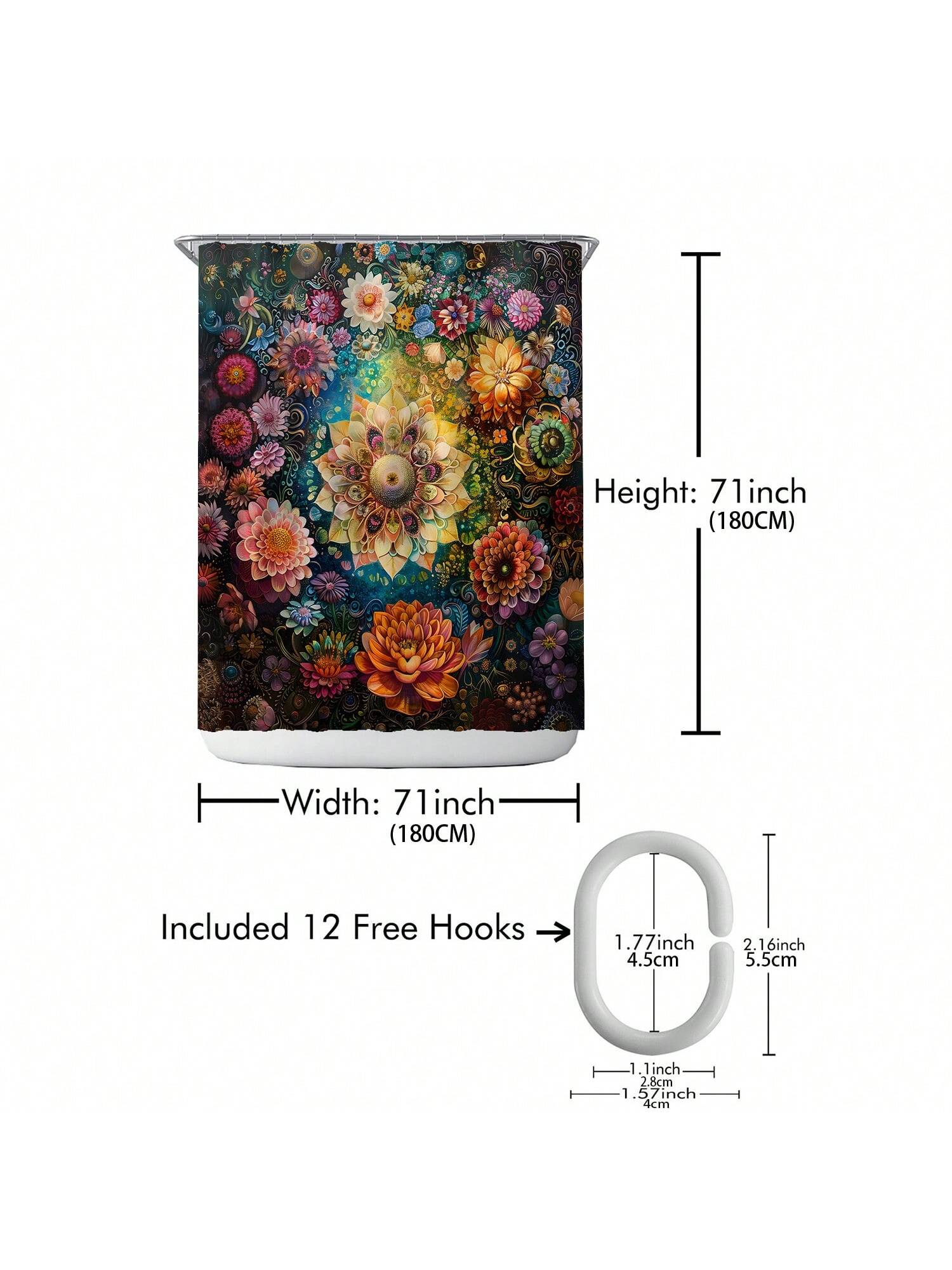 Shower Curtain Set. This complete decor solution comes with hooks for easy installation. Our stylish design brings a touch of elegance to your space while also providing waterproof protection for your shower."