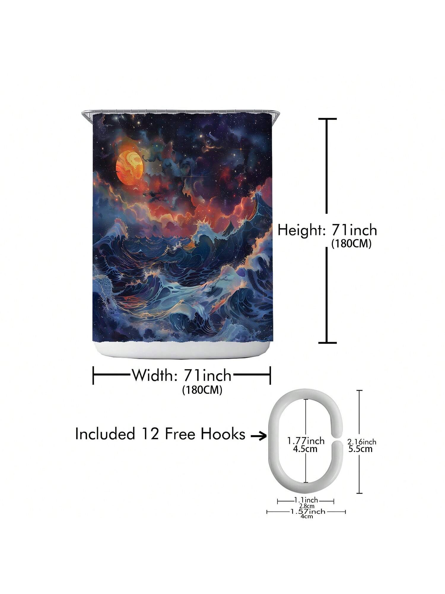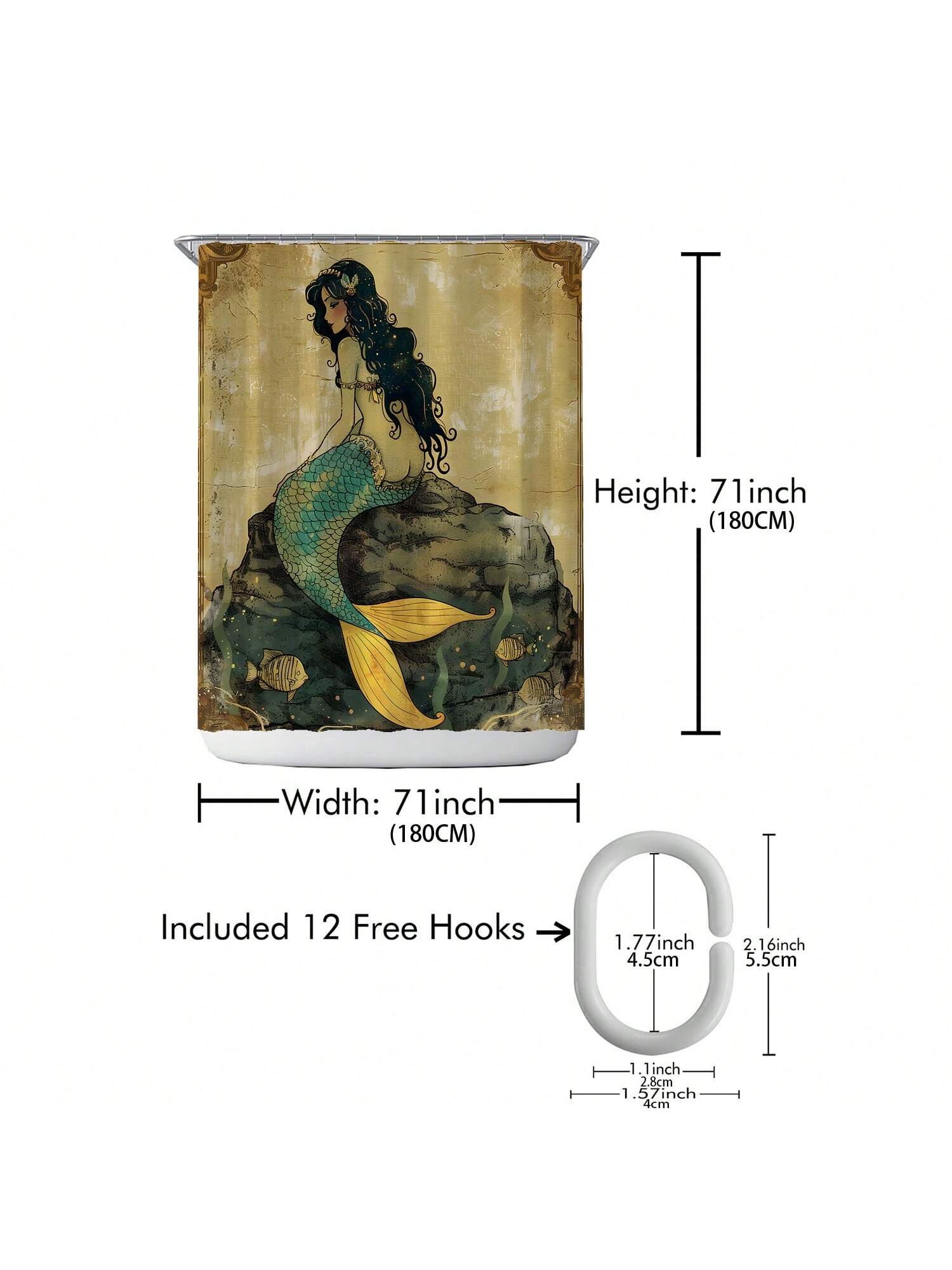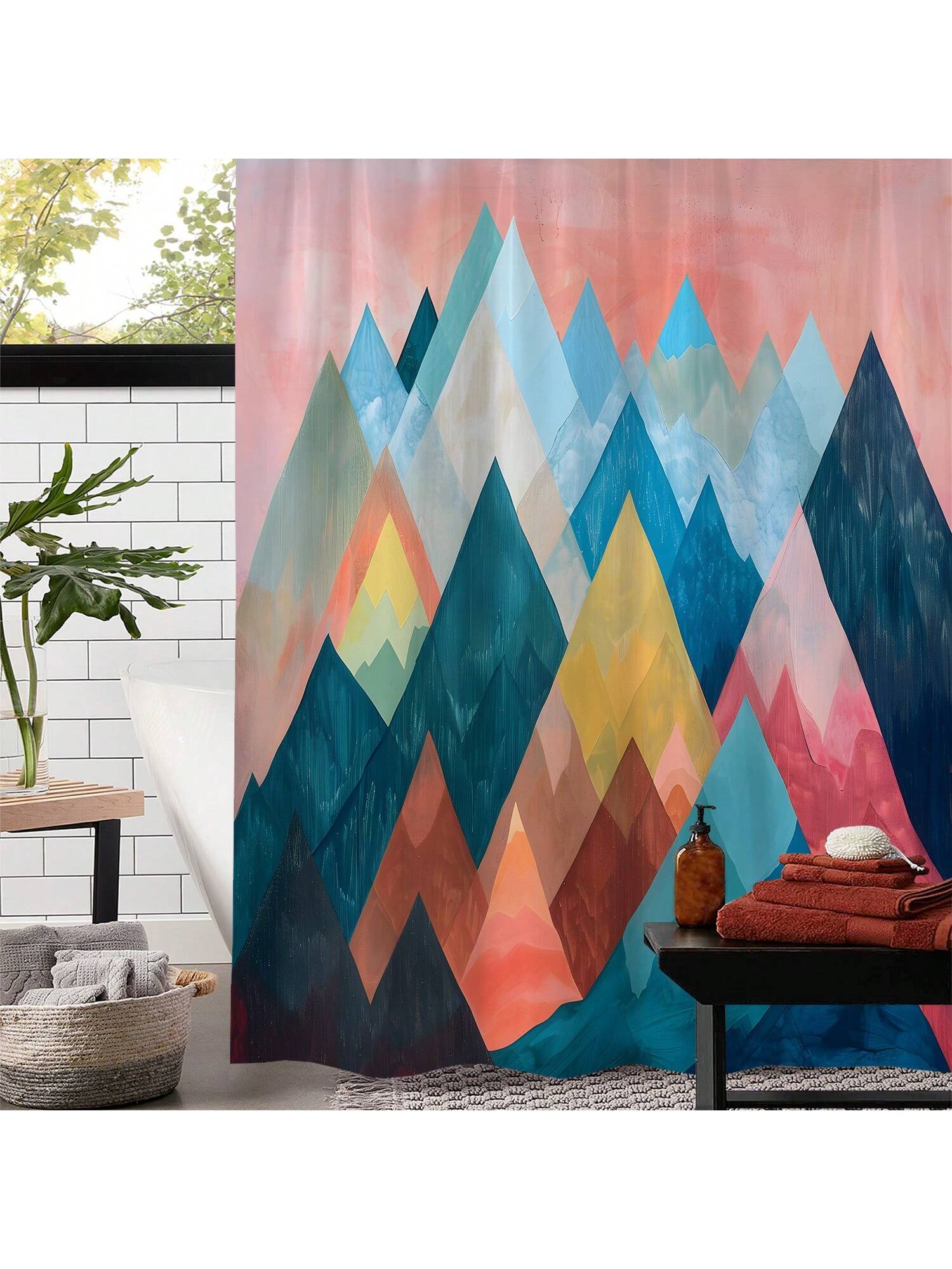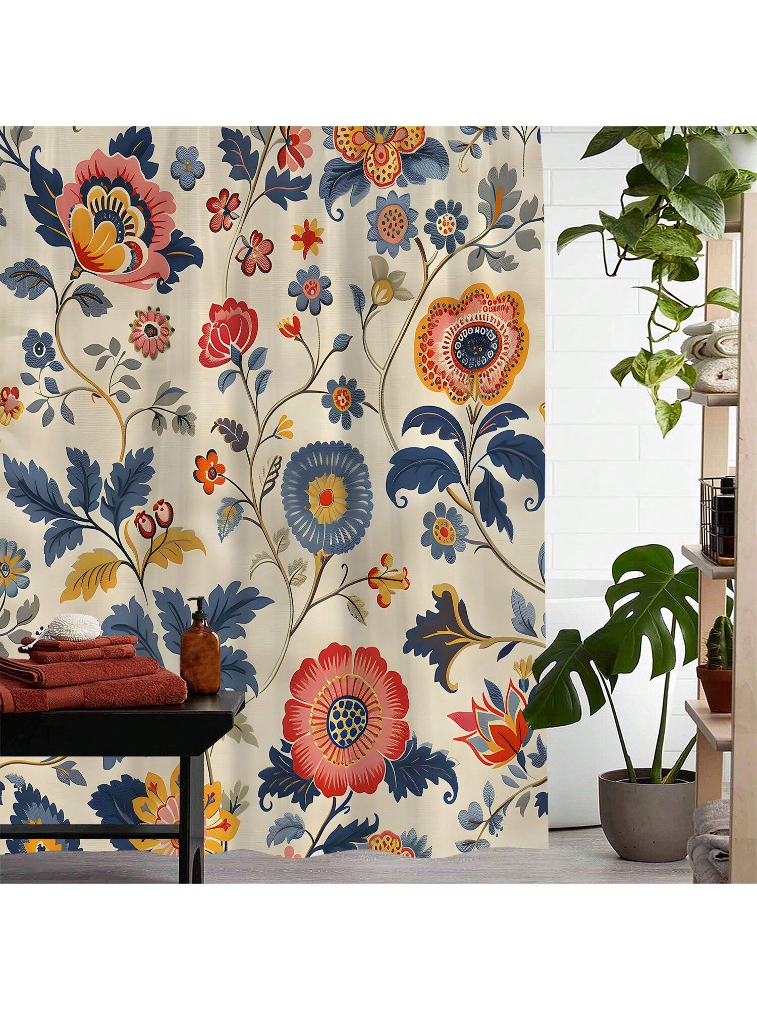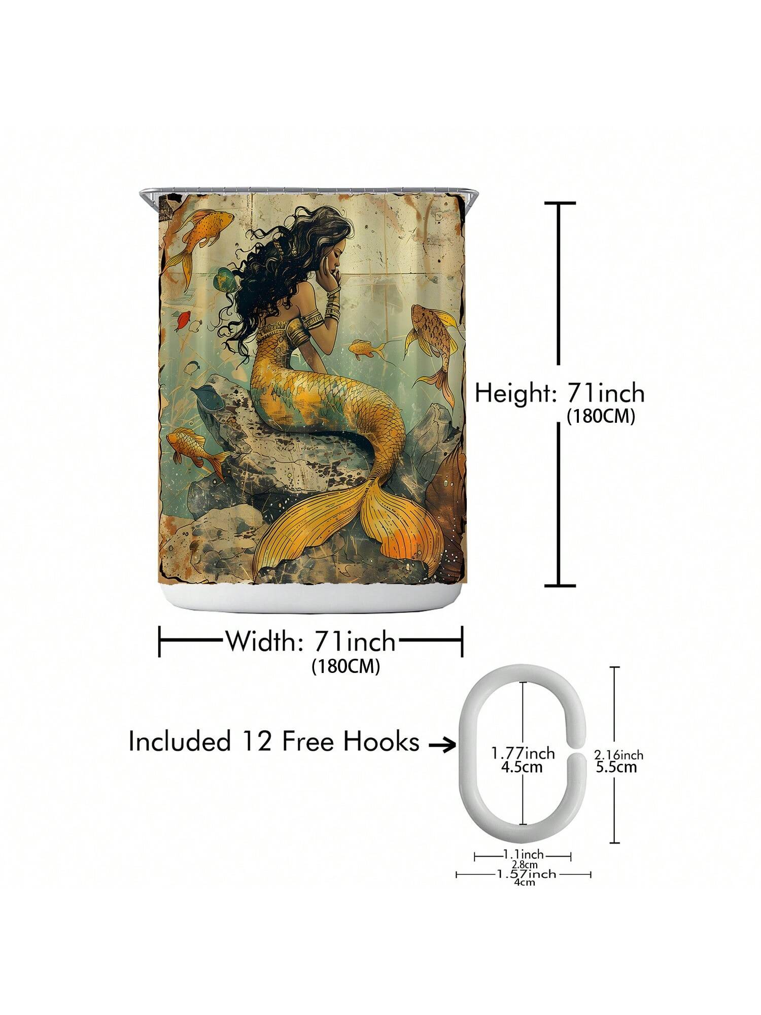 Shower Curtain Set. This complete decor solution comes with hooks for easy installation. Our stylish design brings a touch of elegance to your space while also providing waterproof protection for your shower."