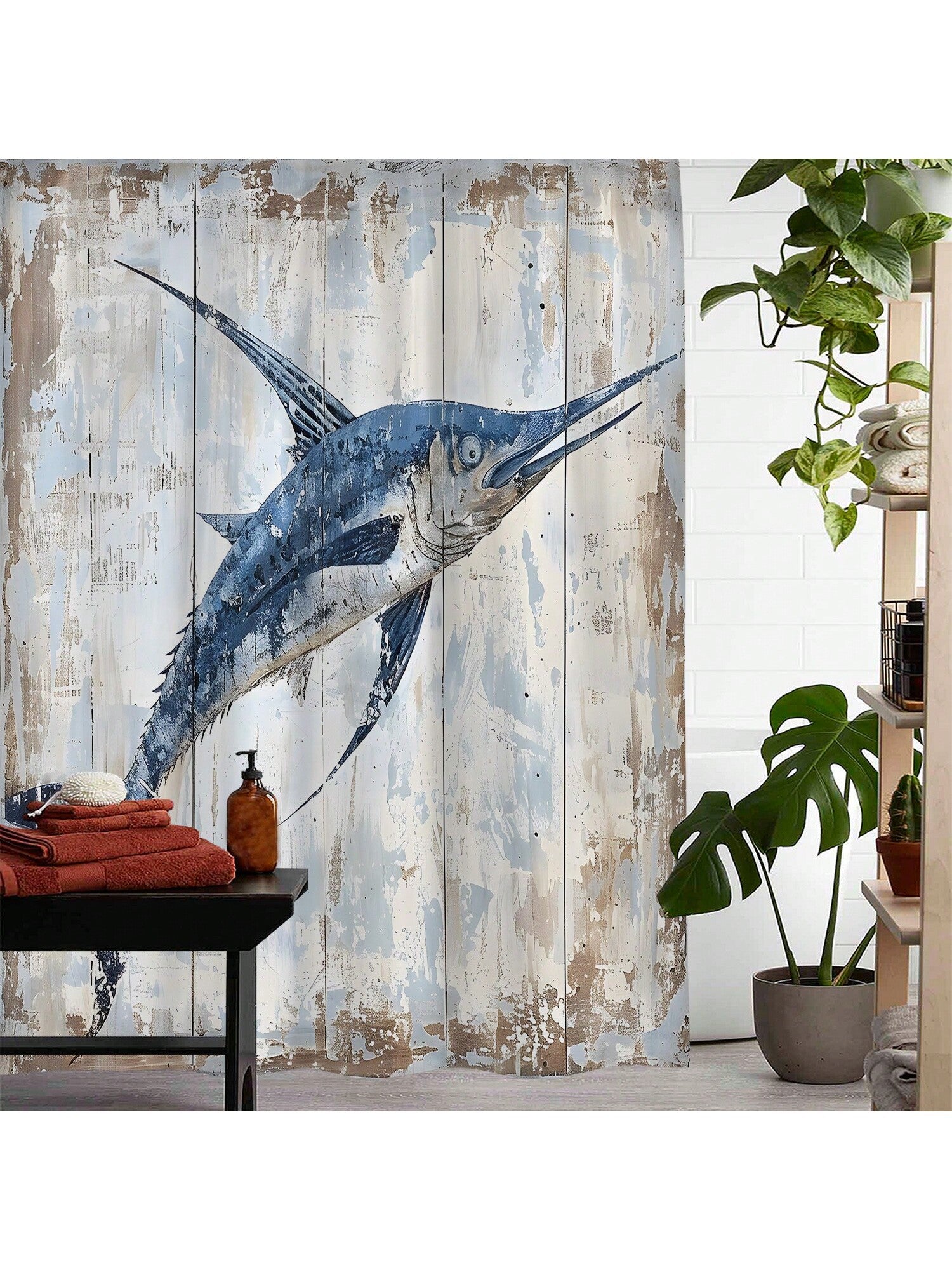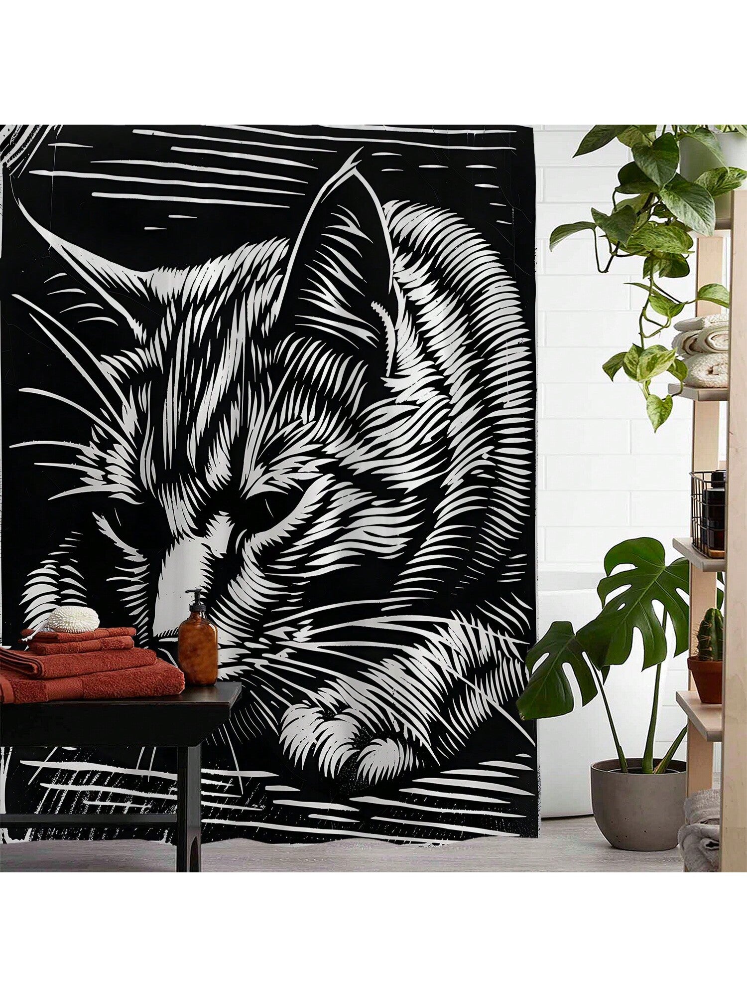 Enhance your bathroom with our Chic Printed Waterproof Shower Curtain Set. This complete decor solution comes with hooks for easy installation. Our stylish design brings a touch of elegance to your space while also providing waterproof protection for your shower.