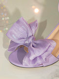 Chic Purple Bow-Decor Chunky Heeled Ankle Strap Sandals for Women
