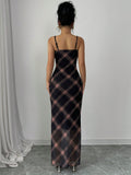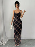Chic Raffin-a Women's Elegant Mesh Plaid V-Neck Bodycon Dress