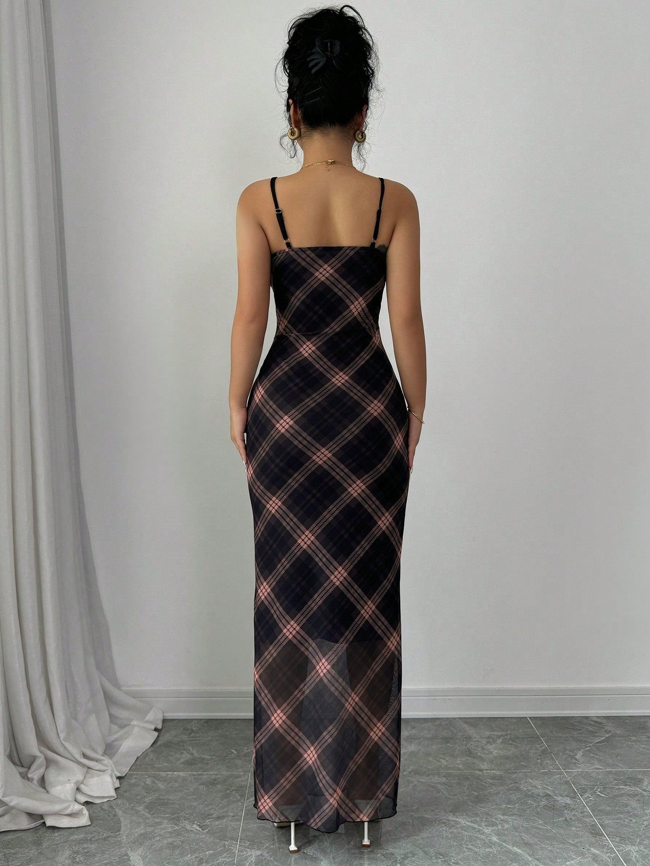 Be elegant and chic in our Chic Raffin-a Women's Elegant Mesh Plaid V-Neck Bodycon Dress. With its stylish mesh and plaid design, this dress is both comfortable and fashionable. The V-neck adds a touch of sophistication, making it perfect for any occasion. Elevate your wardrobe and turn heads with this trendy and versatile dress.