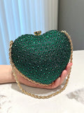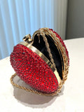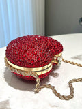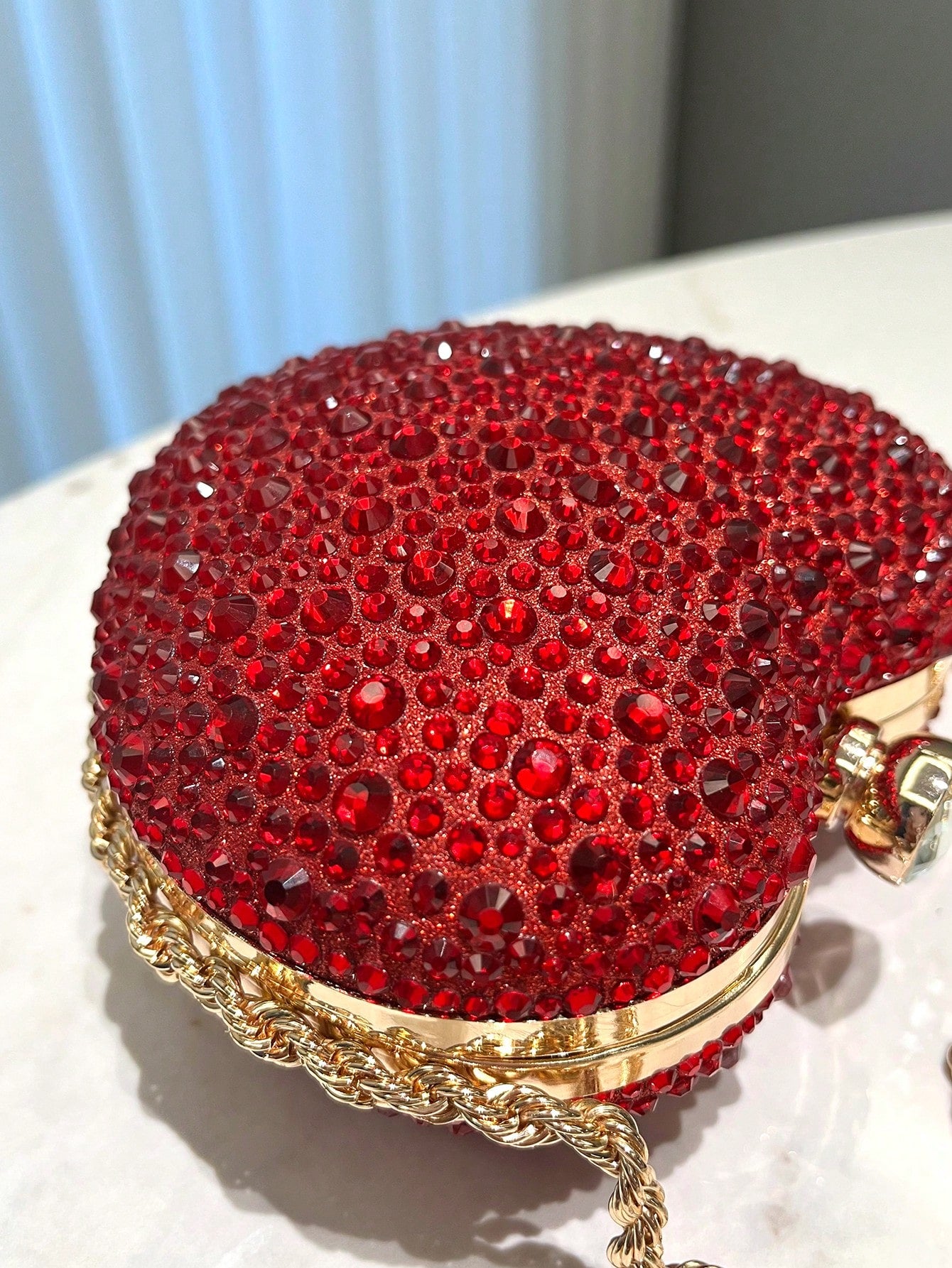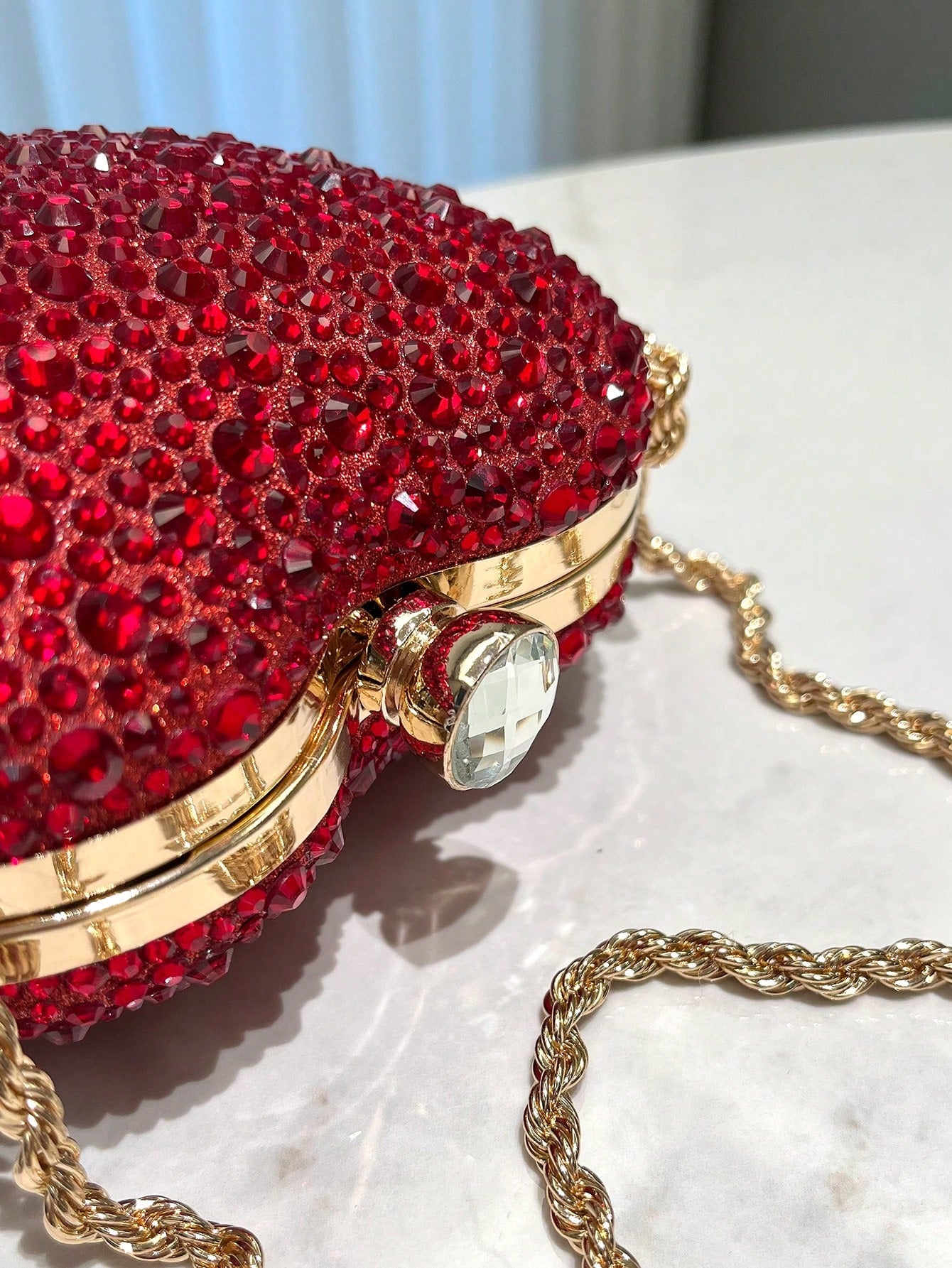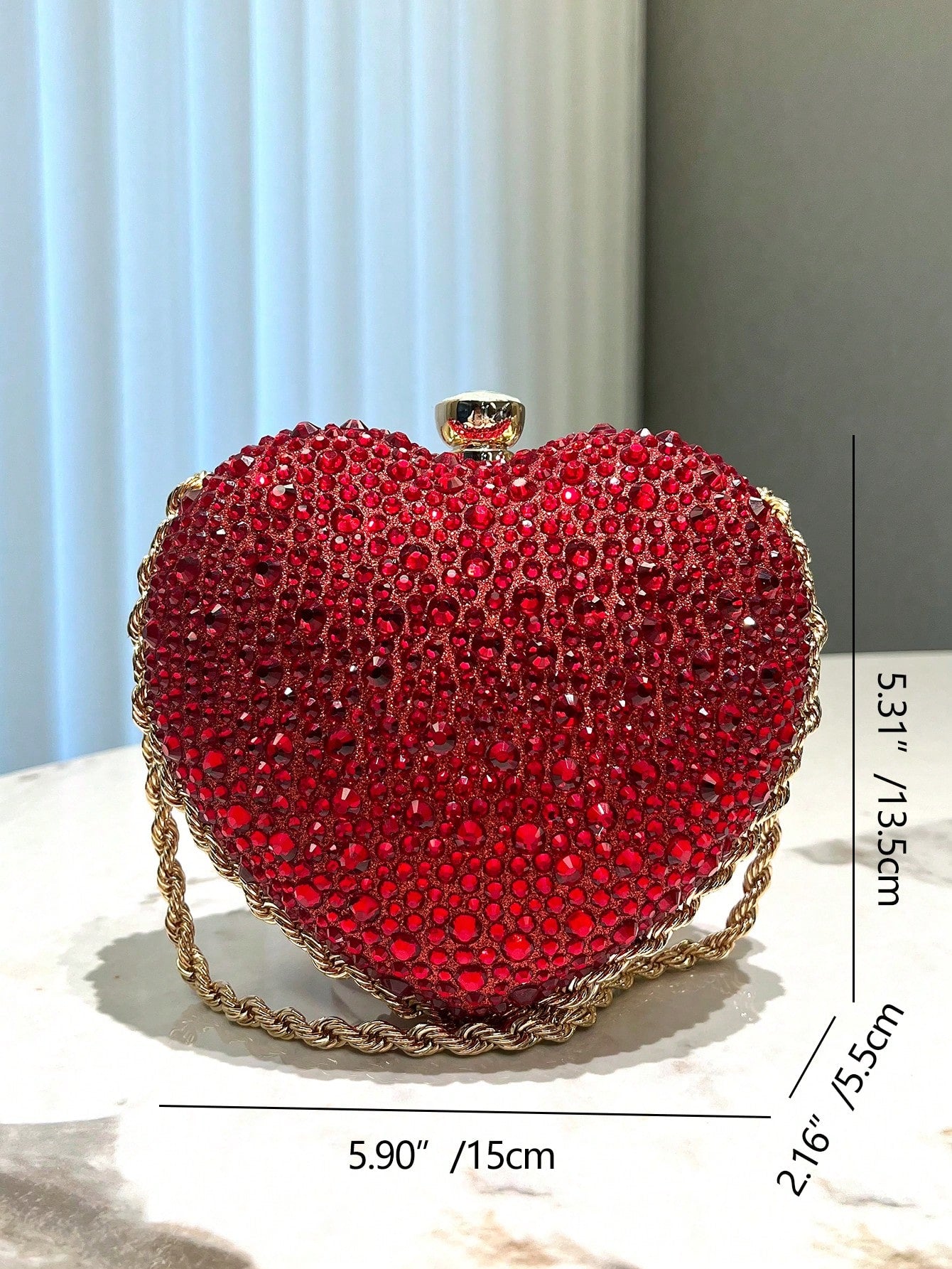 Chic Red Heart-Shaped Rhinestone Evening Clutch Bag with Metal Chain Strap - Perfect for Banquets, Weddings, and Formal Occasions