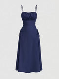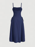 Chic Red Ruched Bust Lace Up Side Cami Long Dress for Effortless Daily Style