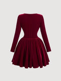Chic Red Velvet Turtleneck Dress: Versatile Waist-Cinched Autumn Essential