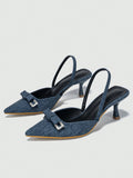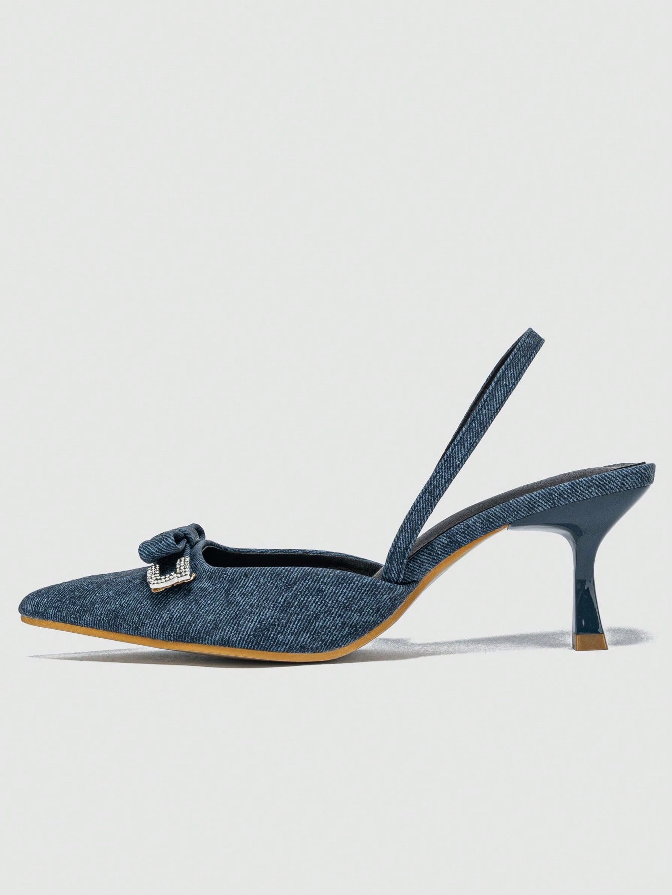 Elevate your style with our Chic Rhinestone Bow Pointed Toe Slingback Pumps. These stylish blue footwear feature pyramid heels, adding a touch of elegance to any outfit. The pointed toe and slingback design provide a comfortable and secure fit, while the rhinestone bow adds a touch of glamour. Perfect for a fashionable flair.