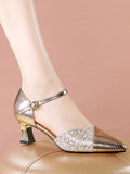 Chic Rhinestone-Embellished High Heel Pumps - Elegant Casual Footwear in Champagne Gold, Silver, and Black