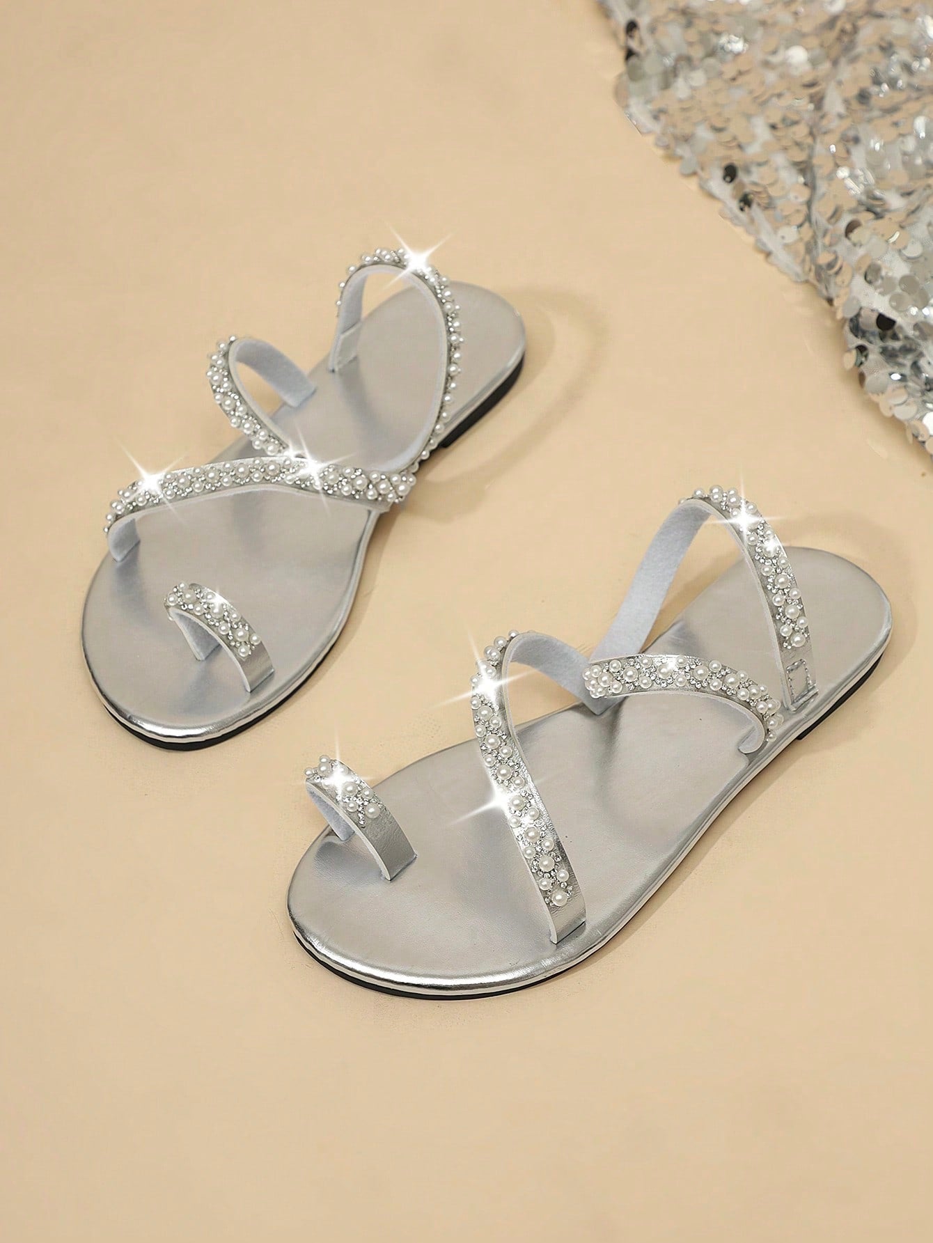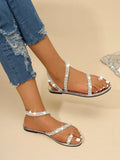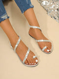 Chic Rhinestone Flat Sandals - Stylish Toe Ring Slides for Beach & Outdoor