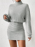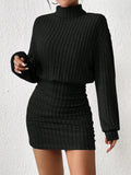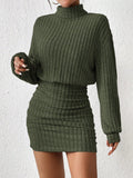 Chic Ribbed Turtleneck Midi Dress for Effortless Spring & Fall Style