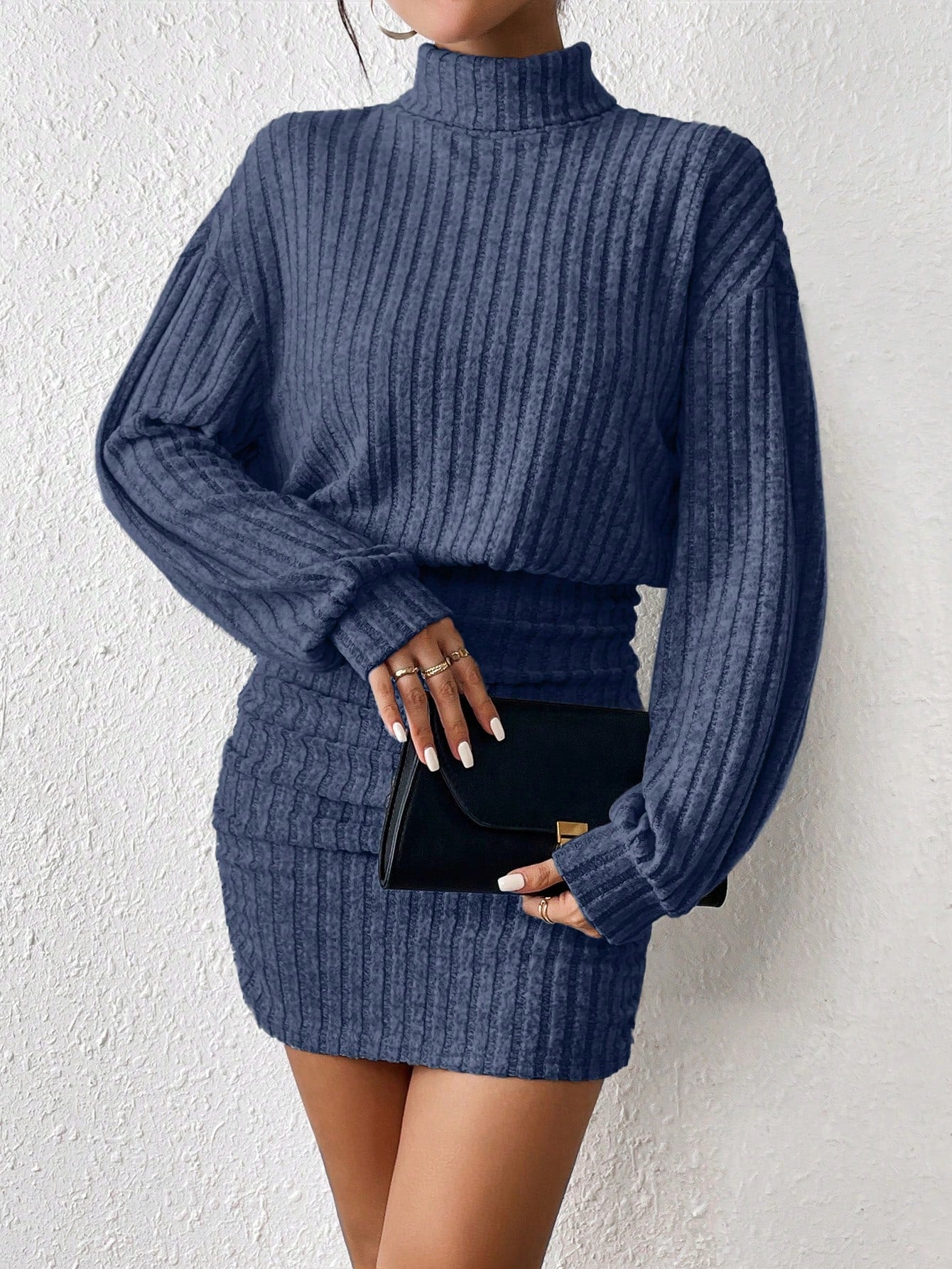 The Chic Ribbed Turtleneck Midi Dress is the perfect addition to your wardrobe for effortless style in both spring and fall. Its ribbed design adds a touch of sophistication, while the turtleneck provides both fashion and warmth. Elevate your style game with this versatile piece.