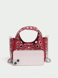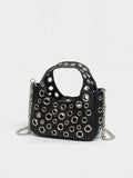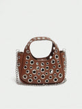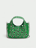 Chic Riveted Crossbody Handbag: Luxury PU Leather with Top Handle & Adjustable Strap