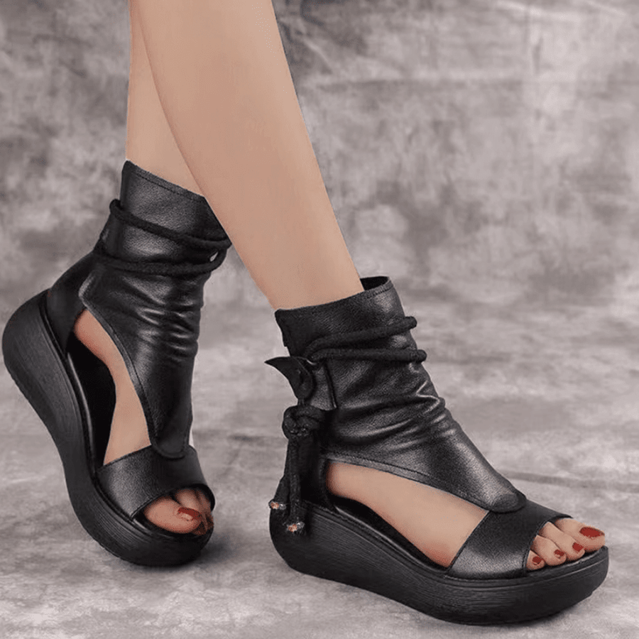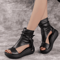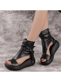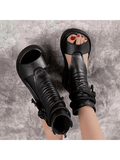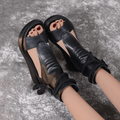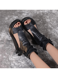 Chic Roman Style Waterproof Platform Black Sandals for Women - Elevate Your Summer Style