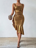Chic Ruffle A-Line Dress in Solid Color - Effortless Elegance for Any Occasion