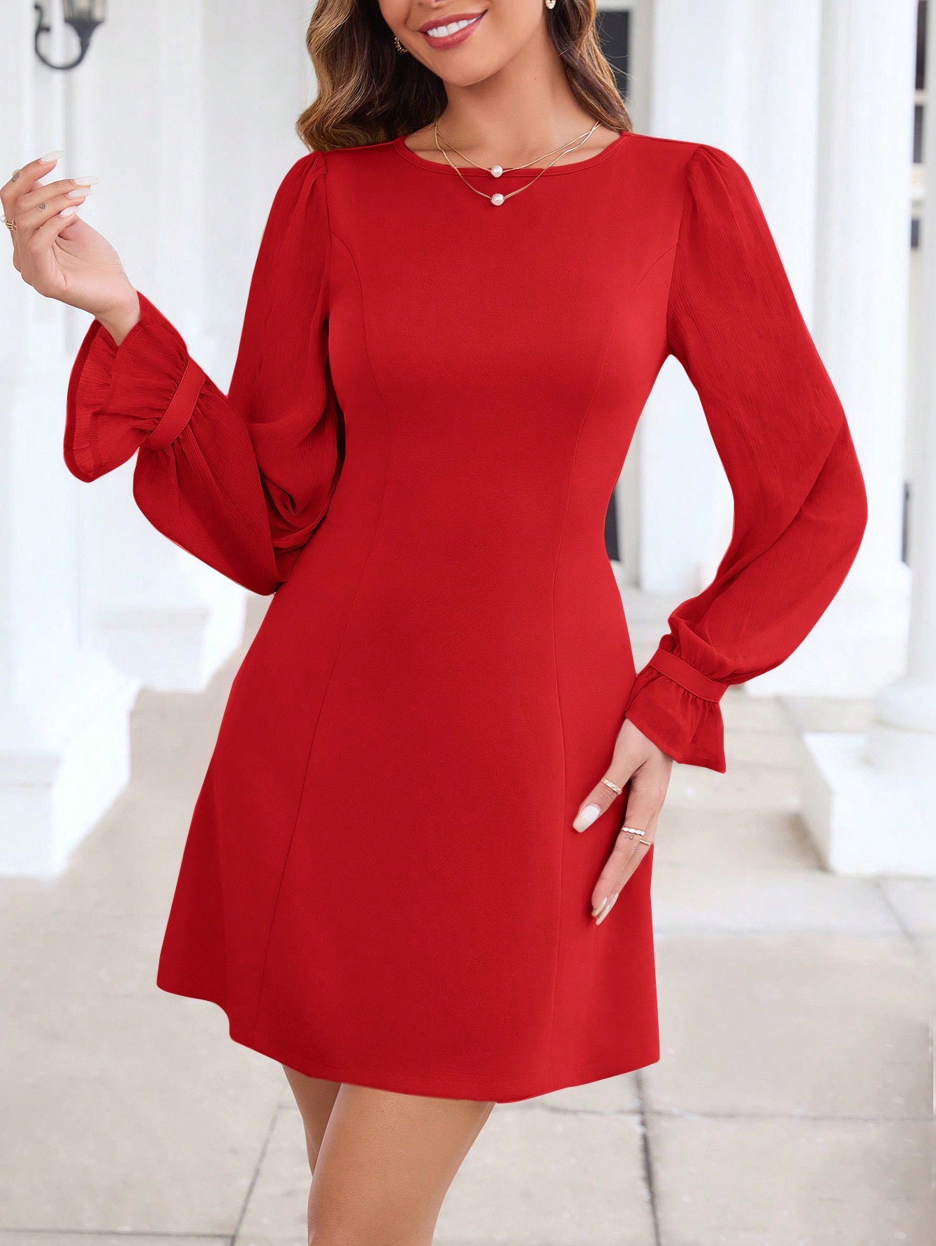 Chic Ruffle Sleeve Solid Color Dress for Effortless Elegance