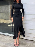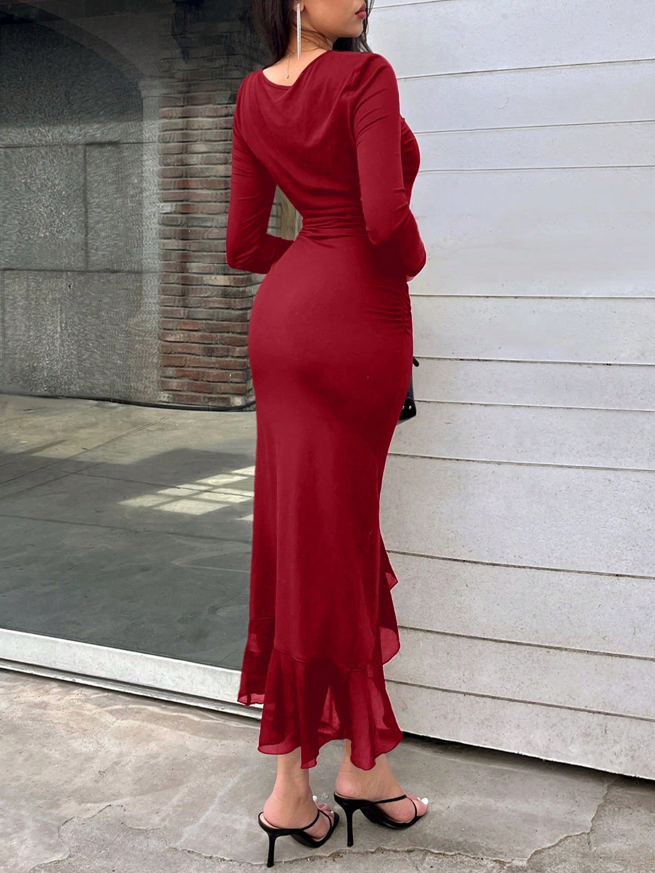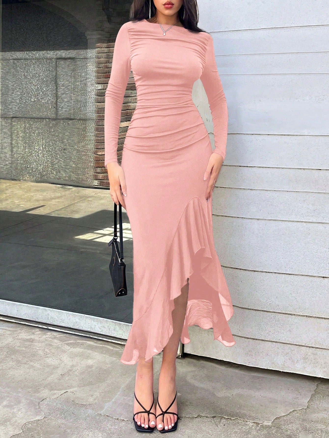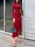 Chic Ruffled Asymmetrical Dress - Elegant Women’s Fashion Statement