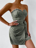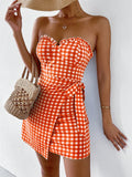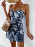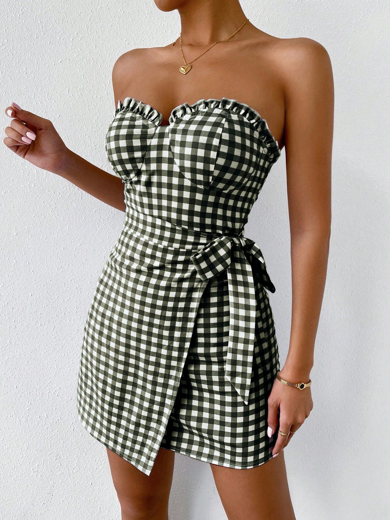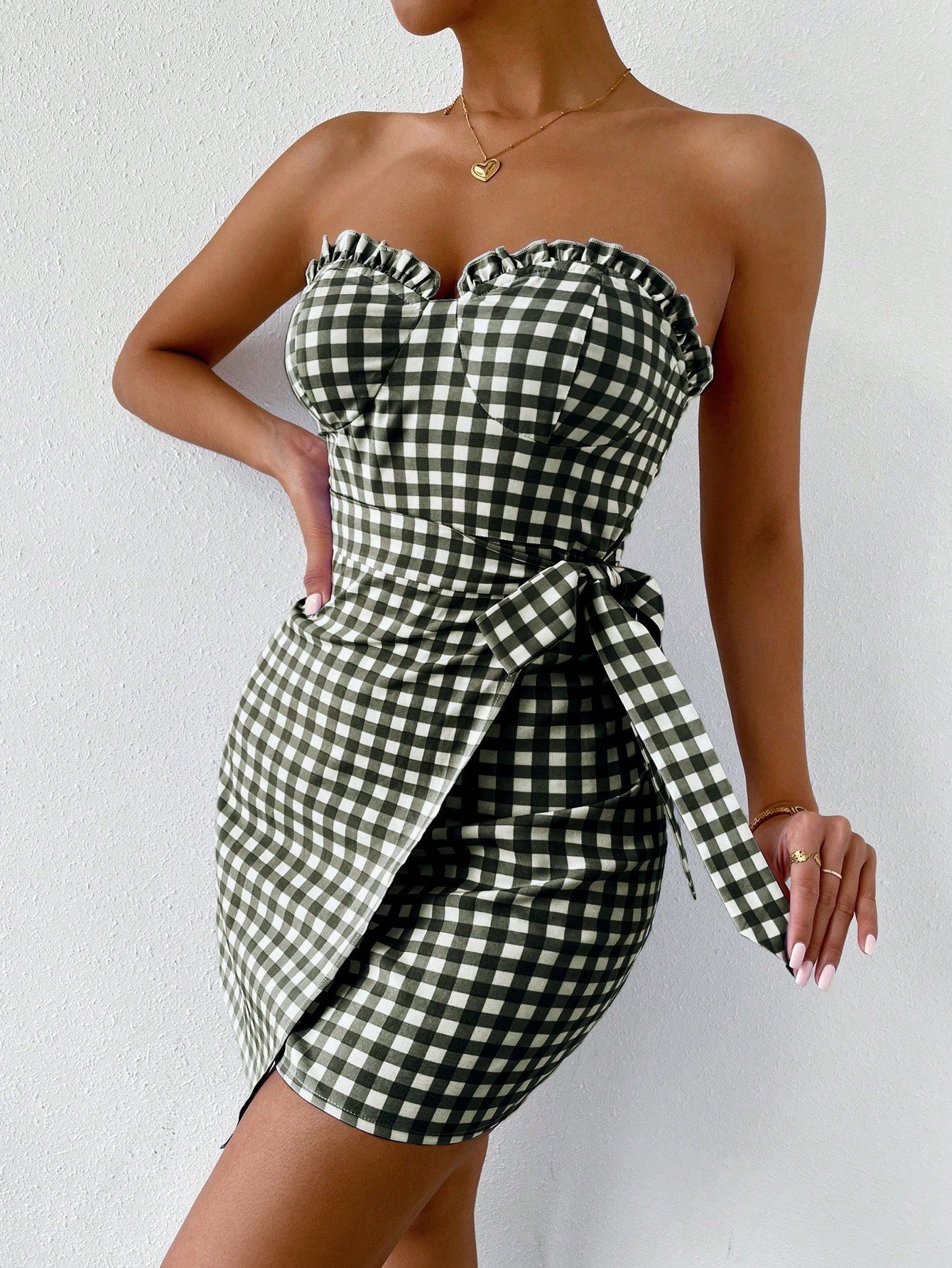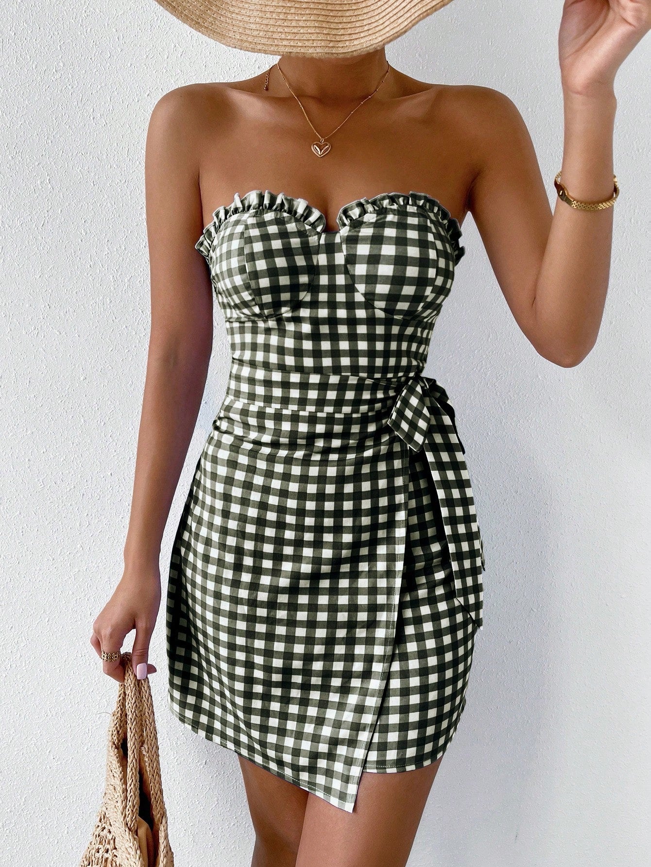 Chic Ruffled Plaid Strapless Dress: Perfect for Your Getaway
