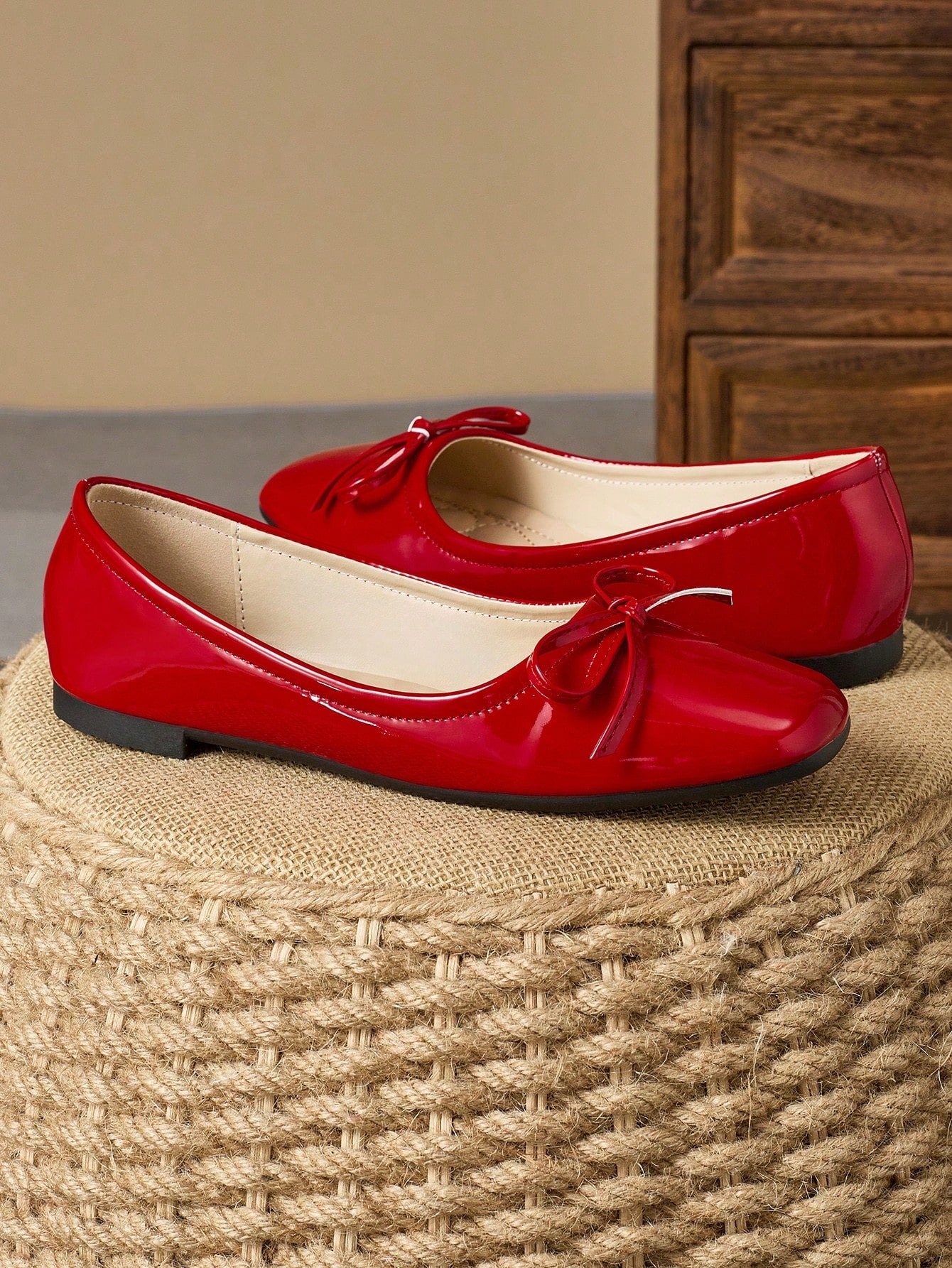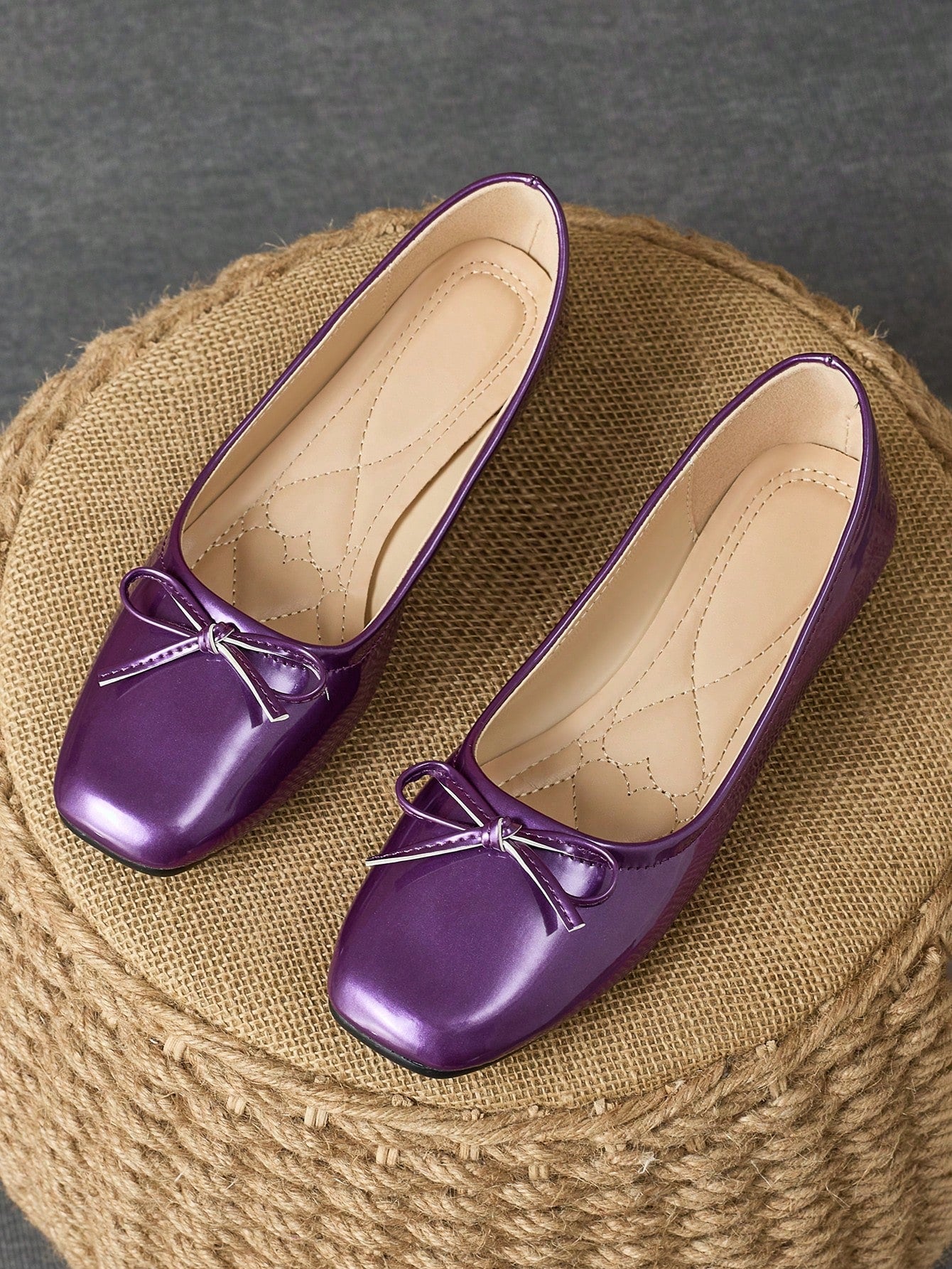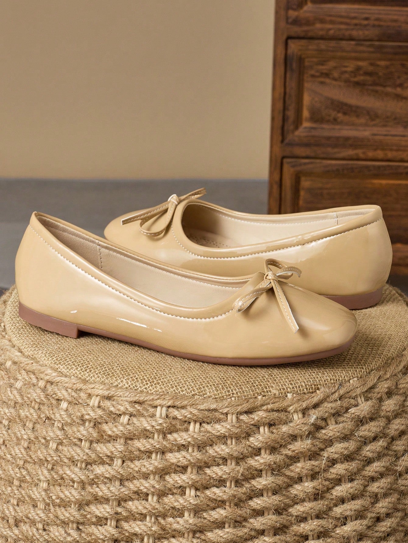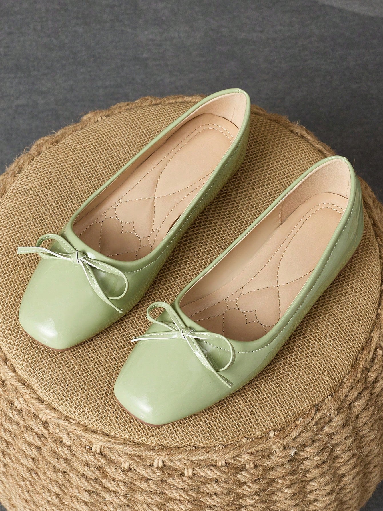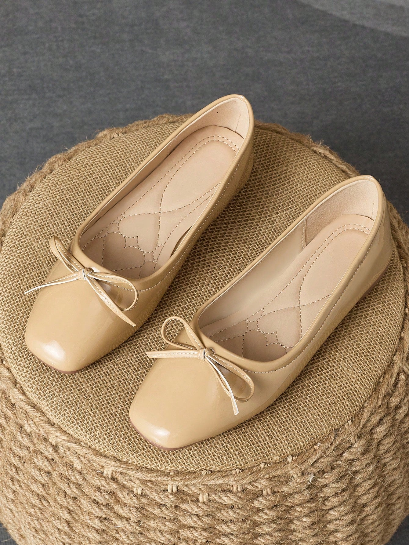 Chic Shallow Mouth Flat Shoes: Elevate Your Style with Bowknot Detail (Light Pink)
