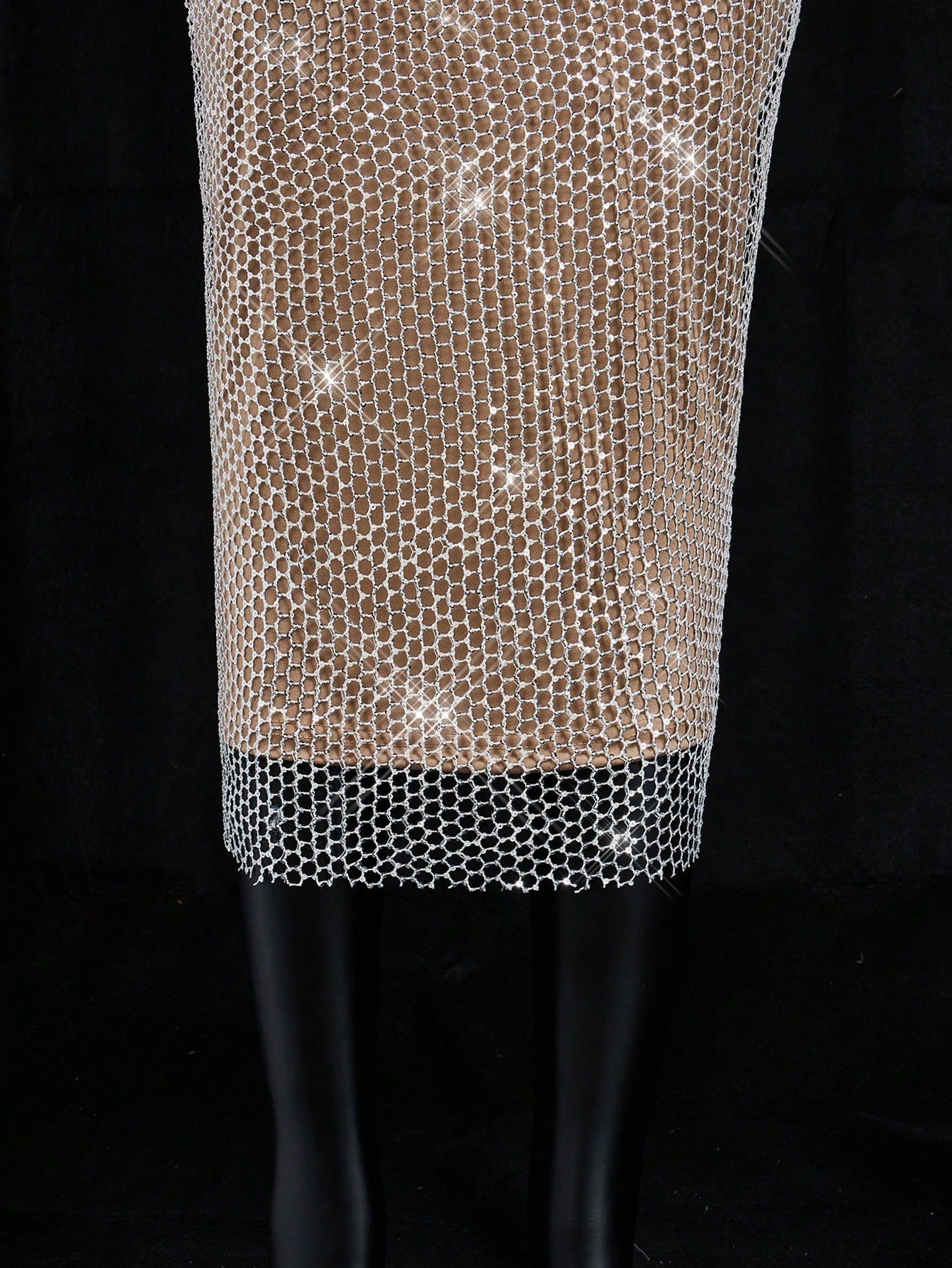 Chic Sheer Mesh Bodycon Dress - Iconic Mid-Length Elegance
