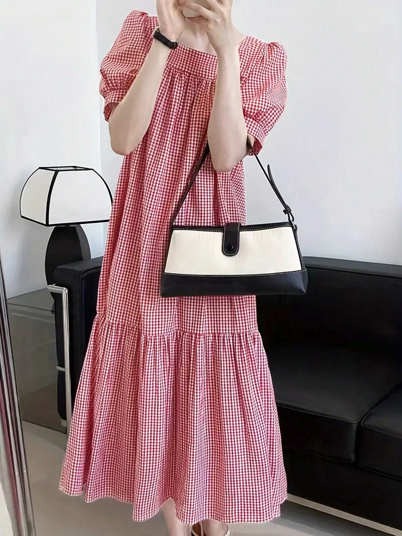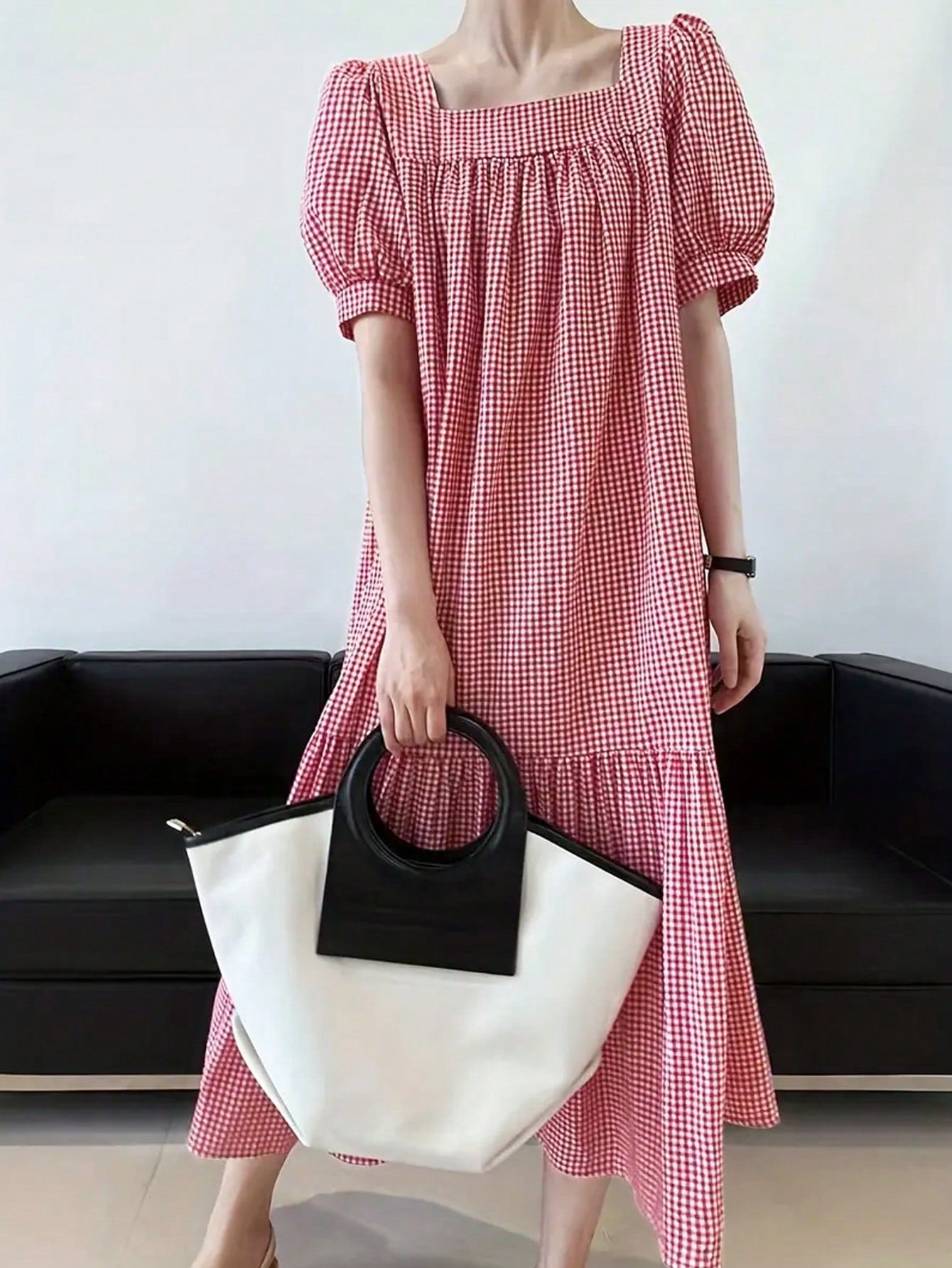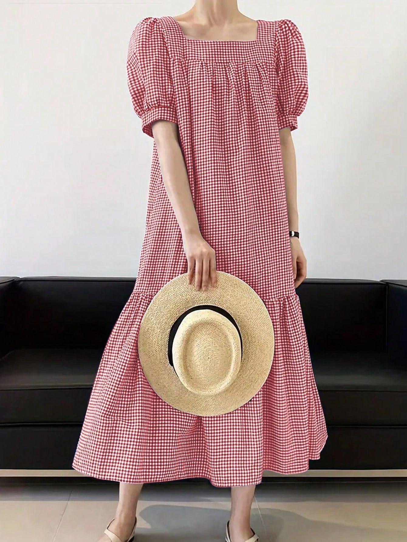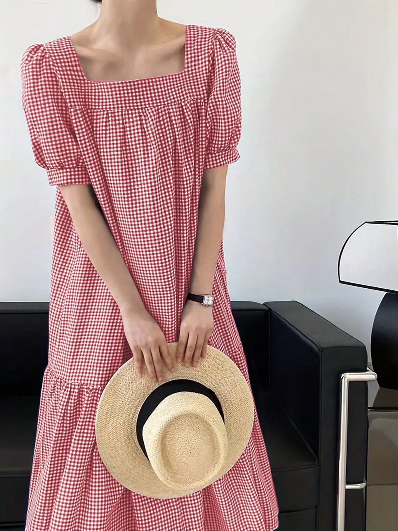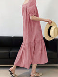 Chic Short Sleeve Plaid Dress with Square Collar for Effortless Style